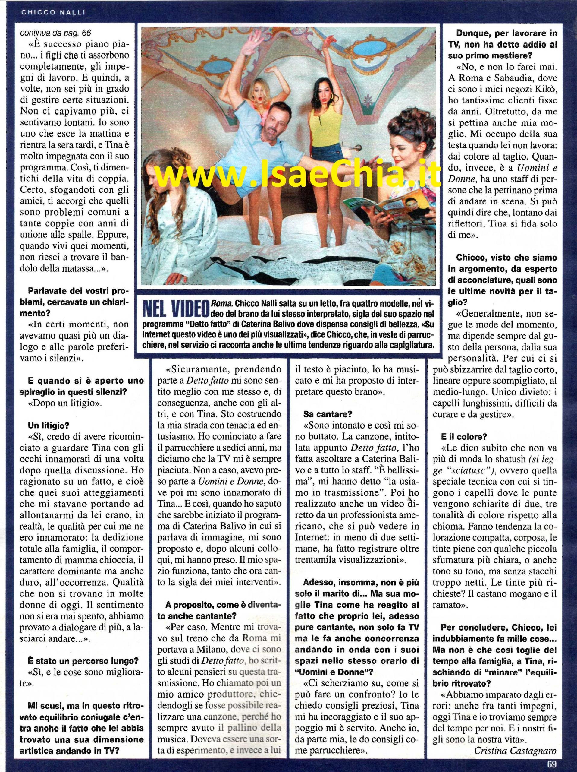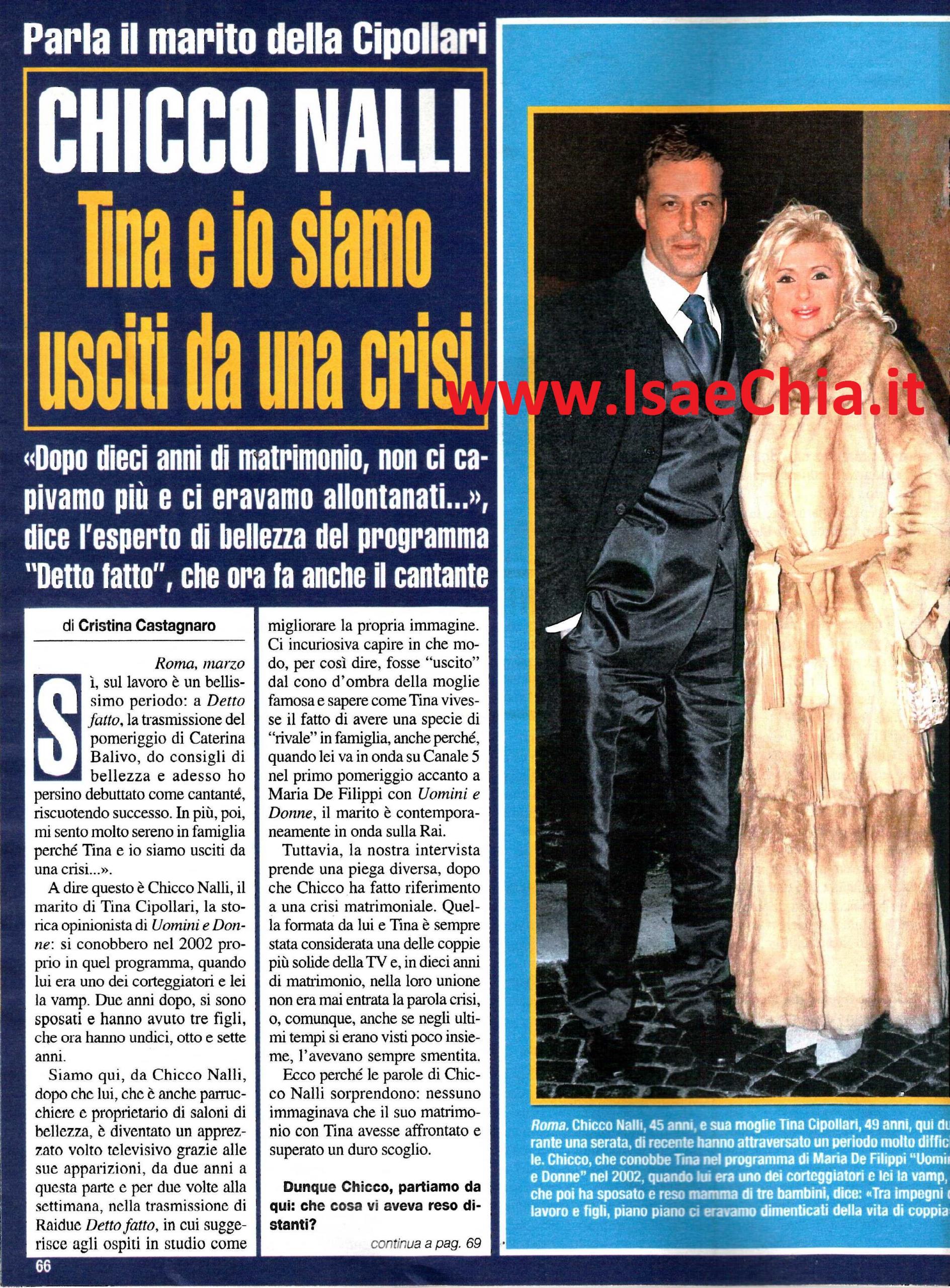 Che Tina Cipollari non fosse più la stessa ultimamente, ce n’eravamo accorti un po’ tutti. Sempre più spumeggiante, la storica opinionista di Uomini e Donne diverte e si diverte con le sue imitazioni dei cantanti, è sempre pronta a lottare per far valere le sue opinioni e non le manda mai a dire. Ultimamente, in particolare, si è lasciata andare con i tronisti Jonás Berami e Fabio Colloricchio e, sebbene si intuisca che i suoi modi sono del tutto scherzosi, in molti hanno sospettato che in realtà Tina fosse tornata single. Adesso, il marito di Tina, il parrucchiere Chicco Nalli rivela che…Ci è andata vicina! I due, infatti, hanno appena superato un periodo di crisi. “E’ successo piano piano: i figli che ti assorbono completamente, gli impegni di lavoro e quindi non ero più in grado di gestire certe situazioni. Non ci capivamo più, ci sentivamo lontani. Io sono uno che esce la mattina e torna la sera, Tina è molto impegnata col programma, così ti dimentichi la vita di coppia. Certo, parlando con gli amici, vedi che sono problemi comuni, ma quando vivi quei momenti, non riesci a ritrovare il bandolo della matassa. In certi momenti, non avevamo più parole, preferivamo i silenzi. Ma dopo un litigio, si è aperto lo spiraglio. Credo di aver cominciato a guardare Tina con gli occhi innamorati di una volta dopo una discussione. Ho ragionato sul fatto che quegli atteggiamenti che mi stavano portando ad allontanarmi erano, in realtà, le qualità di cui mi ero innamorato: la dedizione totale alla famiglia, il comportamento da mamma chioccia, il carattere dominante e duro all’occorrenza“. Quando gli si chiede se nella crisi c’entra anche il fatto che ora lui lavori anche in tv, e precisamente a Detto fatto, il programma di Caterina Balivo su Raidue in concorrenza proprio con Uomini e Donne, Chicco risponde: “Sicuramente, prendendo parte a Detto fatto, mi sono sentito meglio con me stesso e di conseguenza anche con Tina. Faccio il parrucchiere da quando avevo 16 anni, ma la strada della tv mi è sempre piaciuta: non a caso avevo preso parte a Uomini e Donne, dove ho conosciuto Tina. Il programma va bene e il mio spazio funziona, tanto che ora canto anche la sigla dei miei interventi! Tutto è nato per caso: ero sul treno da Roma a Milano, verso gli studi di Detto fatto e ho scritto dei pensieri sulla trasmissione. Ho chiamato un amico produttore chiedendogli se fosse possibile realizzare una canzone, perché ho sempre avuto il pallino della musica.  Doveva essere un esperimento, invece a lui il testo è piaciuto, l’ha musicato e mi ha proposto di interpretare questo brano. Sono intonato, così mi sono buttato. Mi hanno detto ‘E’ bellissima, la usiamo in trasmissione’. Poi ho realizzato anche un video, diretto da un regista americano e in una settimana ho fatto 30.000 visualizzazioni! La reazione di Tina? Ci scherziamo su: come si può fare un confronto? Io le chiedo dei consigli preziosi e lei mi appoggia. E’ vero, faccio mille cose, ma abbiamo imparato dai nostri errori. Anche fra mille impegni, ora io e Tina troviamo il tempo per noi. E i nostri figli sono la nostra vita“.