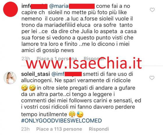 Ci auguriamo che i diretti interessati intervengano presto in maniera più ferma e decisa sui social e, soprattutto, speriamo di rivedere quanto prima Luca e Soleil di nuovo insieme e complici più che mai. In attesa di tutto ciò, che ne pensate di questa coppia? E della loro probabile rottura?