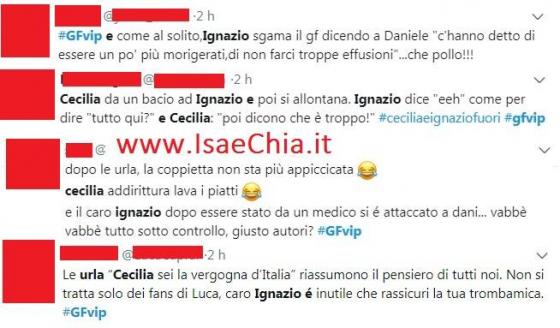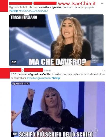 Nei giorni scorsi, inoltre, un video che ritrae i due gieffini nascosti nell’armadio alle prese con effusioni (QUI il video), ha scatenato un vero e proprio putiferio: i telespettatori del reality show, infatti, non hanno affatto gradito queste scene e si sono mobilitati con petizioni per chiedere la loro espulsione e su Twitter spopola l’hashtag #ceciliaeignaziofuori.