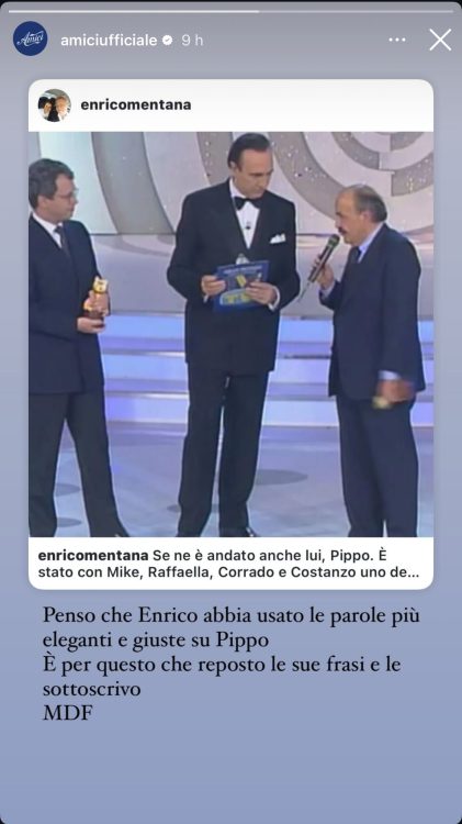 Messaggio ripreso dalla De Filippi che citandolo ha detto: