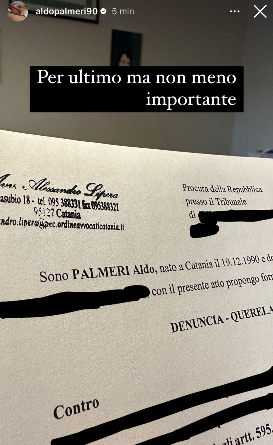 Aldo ha inoltre pubblicato la foto di una denuncia verso chi ha lanciato questo gossip infondato.