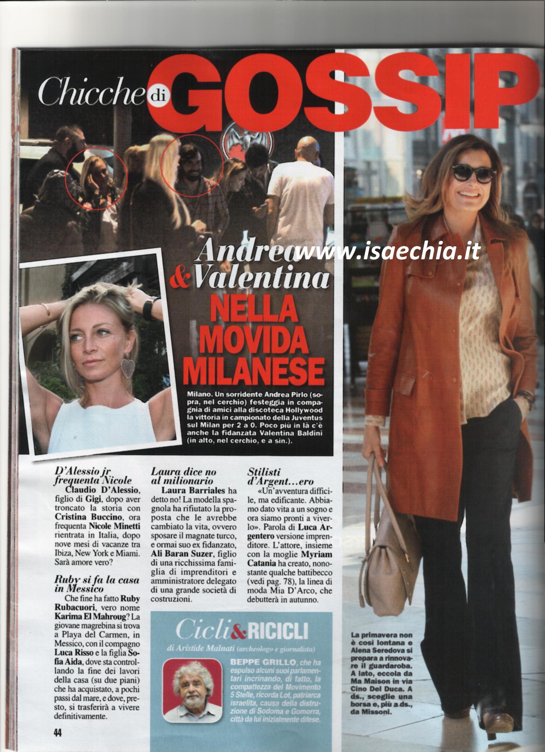 E nel capoluogo lombardo viene avvistato anche Andrea Pirlo, che festeggiava la vittoria della sua Juventus nella discoteca Hollywood con la nuova fidanzata, Valentina Baldini.