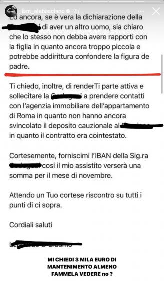 L’ex Vippone ha reso pubblica la lettera che il suo avvocato avrebbe inviato al legale dell’ex compagna
