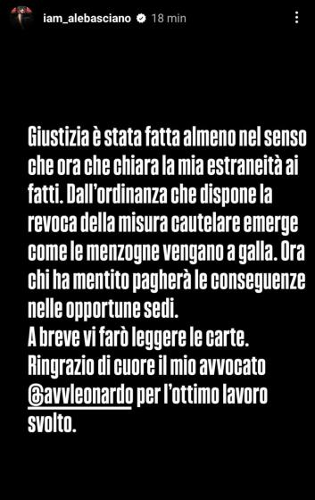 Alessandro Basciano è tornato poco fa sui social dopo la scarcerazione, inviando un messaggio ben preciso:
