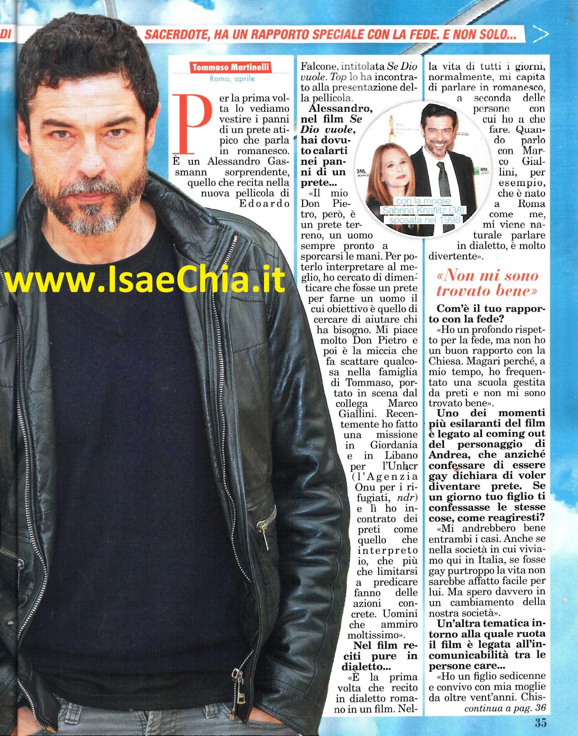 E’ un Alessandro Gassman sorprendente, quello che vediamo nei panni di un prete che parla romanesco nel film Se Dio vuole. “Il mio don Pietro è un prete pronto a sporcarsi le mani: per poterlo interpretare meglio, ho dimenticato che fosse un prete, per farne un uomo il cui obiettivo era aiutare chi ne ha bisogno. Recentemente ho preso parte ad una missione in Giordania e Libano e lì ho incontrato dei preti come quello che interpreto, che non si limitano a predicare, ma fanno delle azioni concrete: uomini che ammiro tantissimo. Io ho un profondo rispetto per la fede, ma non ho un buon rapporto con la Chiesa, magari perché ai miei tempi, ho gestito una scuola gestita da preti e non mi sono trovato bene. E’ la prima volta che recito in dialetto romano in un film; nella vita di tutti i giorni mi capita di parlarlo, a seconda delle persone con cui ho a che fare“. Uno dei momenti più divertenti del film è quello in cui il personaggio di Andrea, anziché confessare che è gay, confessa di volersi fare prete. Quando gli si chiede come reagirebbe se suo figlio gli confessasse le stesse cose, l’attore risponde: “Mi andrebbero bene entrambi i casi. Anche se nella società in cui viviamo qui in Italia, se fosse gay purtroppo la vita non sarebbe facile per lui. Ma spero davvero in un cambiamento della società“. Un’altra tematica del film è invece l’incomunicabilità tra persone care. A proposito, Gassman racconta: “Ho un figlio 16enne e convivo con mia moglie da oltre vent’anni. Chissà, magari ci sopportiamo perché non abbiamo ancora capito con chi abbiamo a che fare. L’altra sera mio figlio Leo era in giro con gli amici e si è arrabbiato con me perché si è trovato sommerso dai cartelloni di questo film, con la mia faccia sui manifesti e mi sono ritrovato a chiedergli scusa. Lo racconto per spiegare che dobbiamo cercare di conoscere meglio i nostri figli. Sono un padre esigente, che tende a far rispettare le regole, come quella di tenere il cellulare spento di notte, o non navigare in internet più di un’ora e mezza al giorno e dover leggere il giornale: faccio questo per il suo bene“.