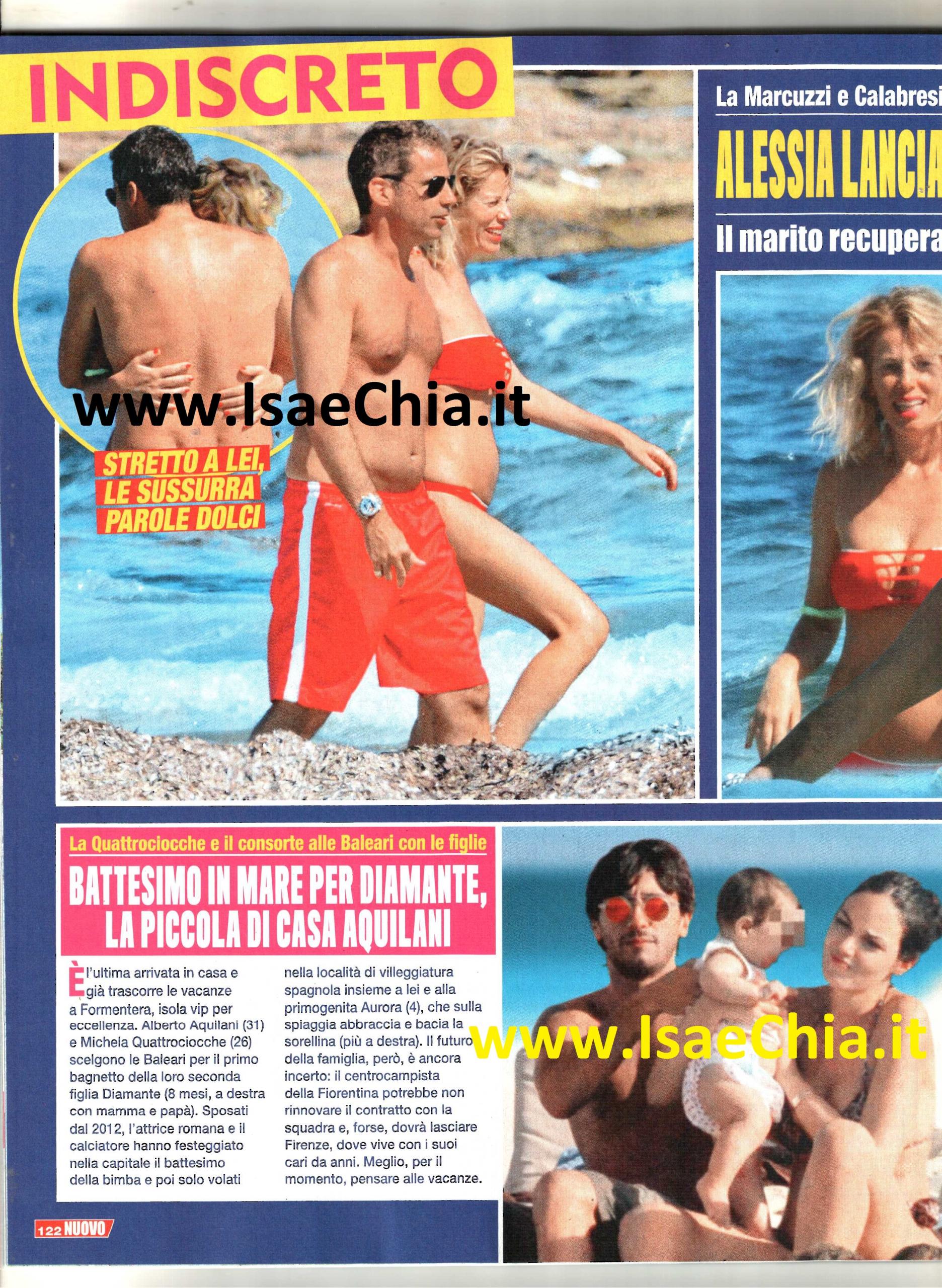 L’estate è finalmente arrivata ed è tempo di vacanze anche per i Vip! Tra una puntata e l’altra del suo Coca Cola Summer Festival, Alessia Marcuzzi ne ha approfittato per una breve fuga romantica con suo marito Paolo Calabresi Marconi, sposato lo scorso dicembre. Mentre sono alla ricerca di un po’ di intimità, i due erano sull’isola spagnola senza Tommaso e Mia, i figli che la conduttrice del Grande fratello ha avuto dalle sue relazioni precedenti. Lei è strizzata un bikini rosso corallo e suo marito non può resistere a baciarla e ad abbracciarla. Poi, quando trova una lattina in acqua, Paolo la raccoglie e la porta a riva, dando prova della sua sensibilità…anche ambientalista!