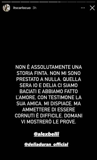 L’uomo protagonista della paparazzata, Carlo Cuozzo, è intervenuto sul suo profilo Instagram e ha smentito la versione riportata da Delia: