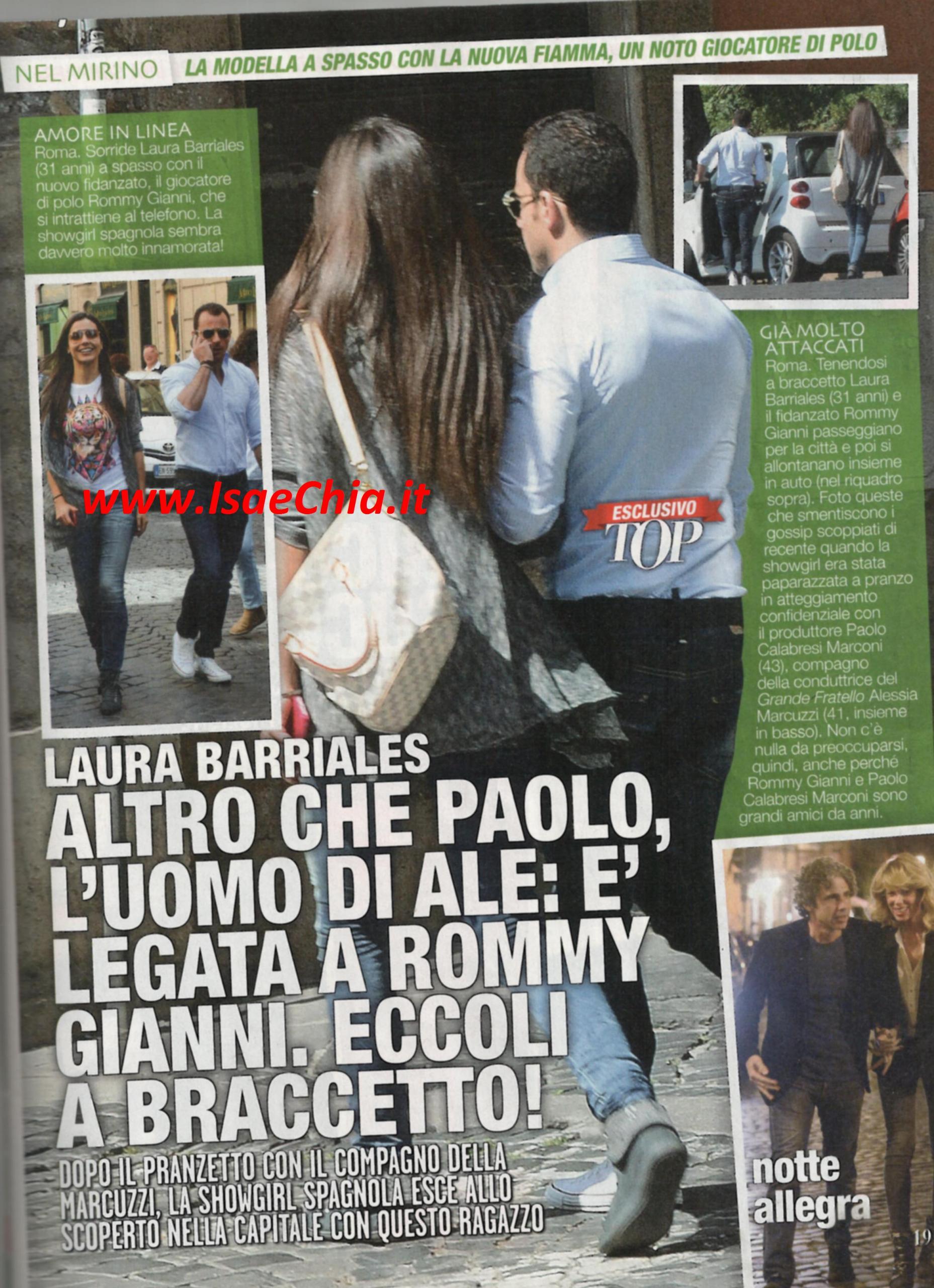 Non è passato molto tempo da quando la showgirl Laura Barriales ha rifiutato la proposta di matrimonio del magnate turco Ali Baran Suzer, che ha frequentato per un po’. Adesso, però, la bella spagnola ha già un nuovo uomo al suo fianco: si tratta di Rommy Gianni, giocatore di polo. Ecco la coppia insieme per le strade di Roma mentre si tengono per il braccio e poi, dopo la passeggiata, salgono in macchina insieme. Queste foto smentiscono così anche gossip scoppiati di recente quando Laura era stata paparazzata a pranzo in atteggiamenti confidenziali insieme a Paolo Calabresi Marconi, il nuovo fidanzato della conduttrice Alessia Marcuzzi...