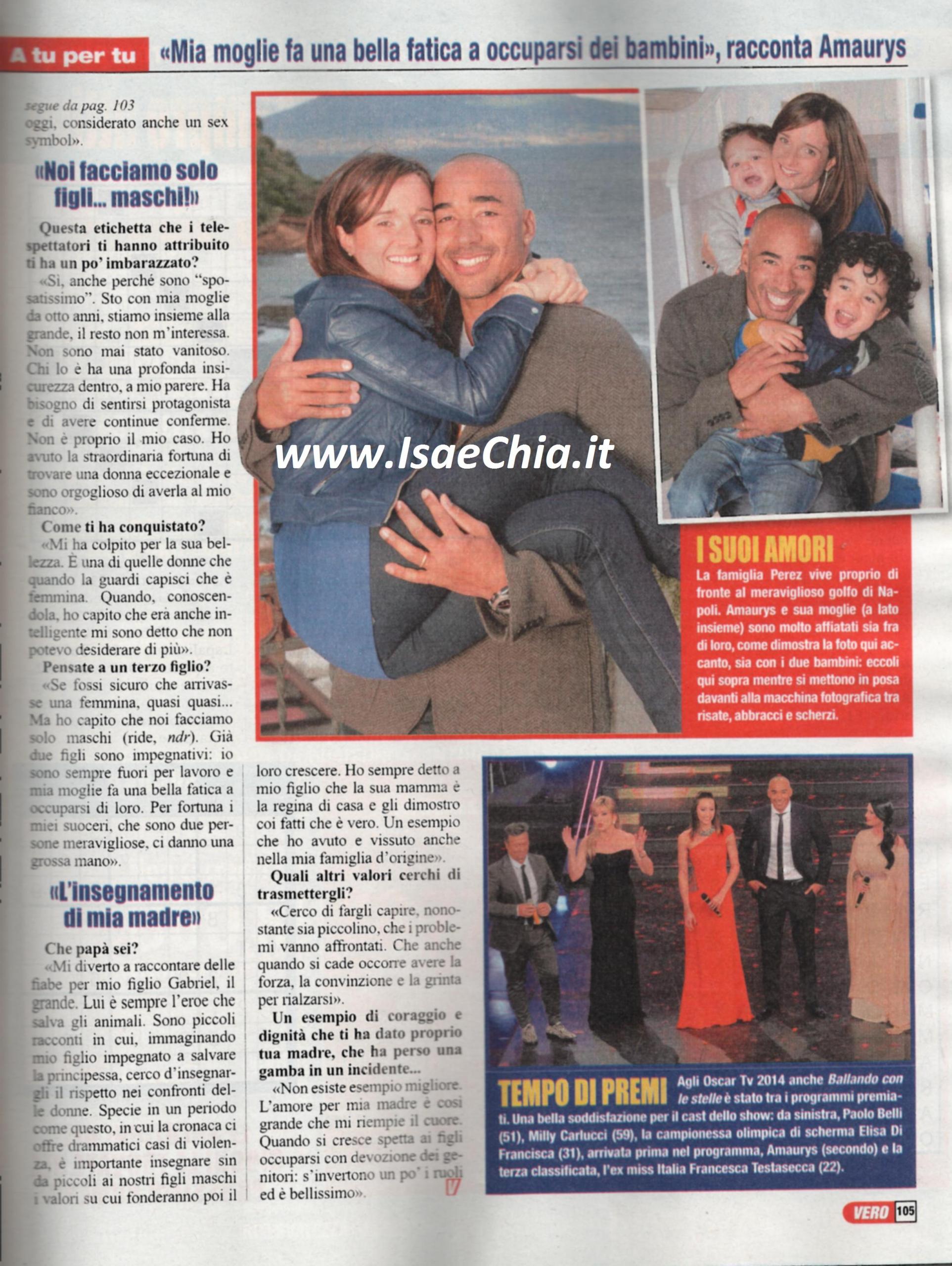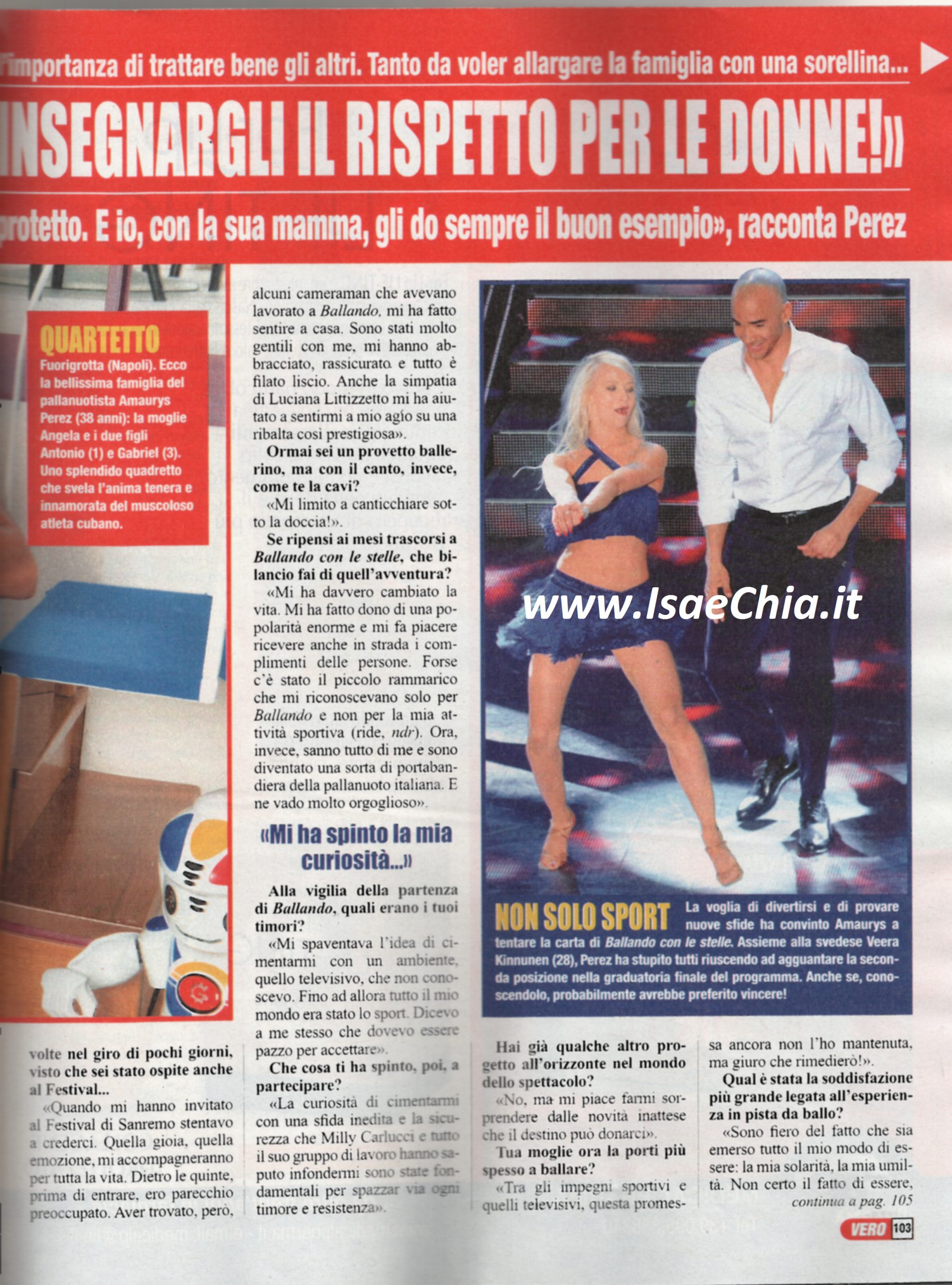 Amaurys Perez è arrivato secondo all’ultima edizione di Ballando con le stelle. Lo sportivo cubano ha commentato così la vittoria del programma dell’Oscar della Tv a Sanremo: “E’ stata una grande emozione: partecipare ad un programma televisivo per la prima volta e ricevere un importante riconoscimento mi lusinga. Tra l’altro sono salito sul palco dell’Ariston per la seconda volta. Quando mi hanno invitato al Festival stentavo a crederci. Dietro le quinte ero molto preoccupato, ma ho trovato alcuni cameramen che erano anche a Ballando, che sono stati gentili e mi hanno rassicurato. Anche la simpatia di Luciana Littizzetto mi ha aiutato a mettermi a mio agio. Ballando mi ha cambiato la vita: la gente mi riconosce, anche se spesso non mi conoscevano per la mia carriera sportiva!” scherza lui. “Prima di iniziare, mi spaventava l’idea di cimentarmi con un ambiente diverso: fino ad allora il mio unico mondo era lo sport e mi dicevo che dovevo essere pazzo per accettare. Poi la curiosità di una nuova sfida e la sicurezza di Milly Carlucci e il suo gruppo hanno saputo infondermi hanno spazzato via ogni timore. Non ho ancora portato mia moglie a ballare, ma giuro che rimedierò. Sono fiero che siano emerse la mia solarità e la mia umiltà, non certo del fatto che sia considerato un sex symbol. Mi ha un po’ imbarazzato, anche perché sono sposatissimo. Sto con mia moglie da 8 anni e il resto non m’interessa; non sono vanitoso e non m’interessa. Ho avuto la fortuna di trovare una donna eccezionale e sono orgoglioso di averla al mio fianco. Mi ha conquistato con la sua bellezza: quando le guardi capisci che è femmina. Quando ho capito che era anche intelligente, mi sono chiesto cosa volessi di più. Un terzo figlio? Se sapessi che arriva una femmina, perché no? Ma noi facciamo solo figli maschi! Due figli sono già impegnativi, io lavoro e mia moglie fatica a occuparsi di loro. Mi diverto a raccontare le fiabe al mio primogenito Gabriel, in cui lui è l’eroe che salva gli animali. Immaginando che lui salva le principesse, gli insegno il rispetto per le donne. Specie in un momento come questo, in cui la cronaca offre drammatici casi di violenza, è importante insegnare ai figli maschi i valori. Dico loro che la mamma è la regina della casa e lo dimostro anche nei fatti. Mia mamma, che ha perso la gamba in un incidente, inoltre, è un esempio per loro: il mio amore per lei mi riempie il cuore”.