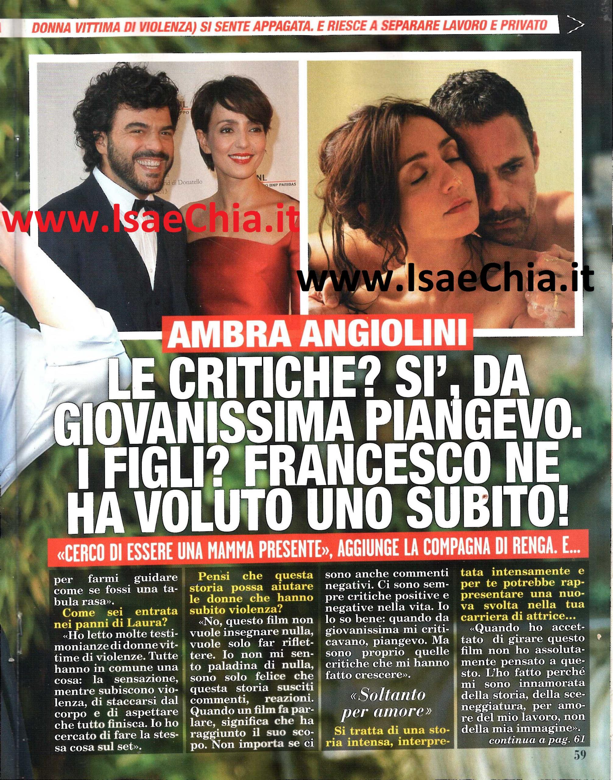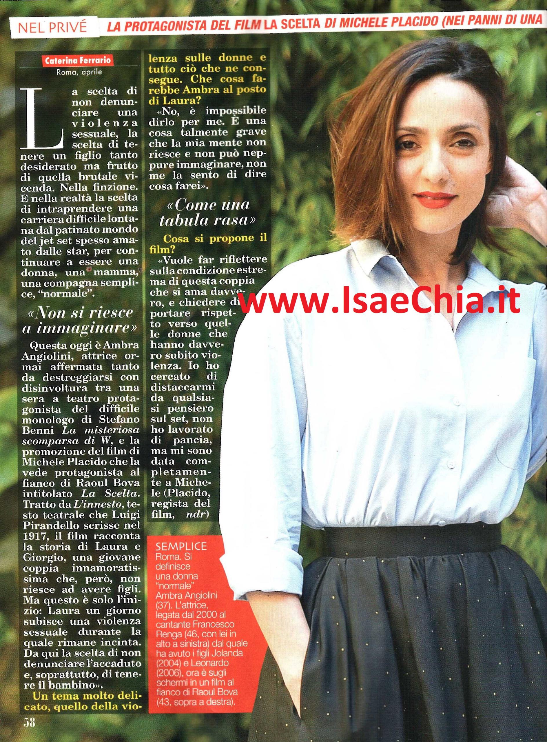 Proprio l’altro ieri in QUESTO articolo vi abbiamo riportato le parole di Raoul Bova, che nel film La scelta ha raccontato il tema della violenza sulle donne. Protagonista femminile della pellicola è Ambra Angiolini, colei che porta avanti la scelta di tenere un bambino frutto di una violenza sessuale e di non denunciare la violenza. Quando le si chiede cosa avrebbe fatto al suo posto, Ambra risponde: “No, è impossibile dirlo per me. E’ una cosa talmente grave che la mia mente non riesce nemmeno ad immaginare, non me la sento di dire cosa farei. Il film vuole far riflettere sulla condizione estrema di questa coppia e chiedere di portare rispetto verso le donne che hanno subito davvero violenza. Io ho cercato di distaccarmi da qualsiasi pensiero sul set, ho lavorato di pancia, ma mi sono data completamente al regista, Michele Placido. Ho letto molte testimonianze di donne vittime di violenza. Tutte hanno in comune una cosa: la sensazione, mentre subiscono violenza, di staccarsi dal corpo e aspettare che tutto finisca e io ho cercato di fare la stessa cosa sul set“. Quando le si chiede se questo film può aiutare le donne che sono state vittime di episodi simili, l’attrice risponde: “No, questo film non vuole insegnare nulla, ma solo far riflettere. Non mi sento paladina di nulla, sono stata felice che questa storia susciti commenti, reazioni. Quando un film fa parlare, significa che ha raggiunto il suo scopo. Ci sono critiche positive e critiche negative e io lo so bene. Quando da giovanissima mi criticavano, io piangevo. Ma proprio quelle critiche mi hanno fatto crescere. Quando ho accettato questo film, non ho minimamente pensato al fatto che potesse rappresentare una svolta nella mia carriera. L’ho fatto perché mi sono innamorata della storia, della sceneggiatura, per amore del mio lavoro, non della mia immagine“. Quando invece le si chiede cosa avrebbe fatto Ambra se non avesse potuto avere figli, lei, che è la compagna del cantante Francesco Renga, attuale giudice di Amici, risponde: “Non ho avuto il tempo di pensarci! Ho avuto la fortuna di trovare un compagno che desiderava un figlio da me subito. Così è arrivata Jolanda quando avevo 26 anni, e dopo due anni, Leonardo. Al di là di questo, credo che ad ogni donna, a prescindere dal fatto che abbia o no dei figli, sia una mamma in ogni caso: il nostro senso materno esiste in natura“. E poi continua a raccontare di sé come mamma e moglie: “Cerco di essere una mamma presente e amo dividere la mia vita privata col lavoro. Avendo due bambini, a casa devo cucinare per forza: io e Francesco non abbiamo cuochi, facciamo tutto noi. Non credo di essere molto brava ai fornelli, ma compro cibi freschi e genuini, evitando quelli pronti o surgelati“. Infine, la domanda di rigore: com’è stato lavorare con Raoul Bova? “Lui è bello dentro e fuori. E’ molto buono. Ci siamo trovati bene sul set e con Placido si è creato un ottimo feeling: credo che il film sia il risultato di quest’intesa“.