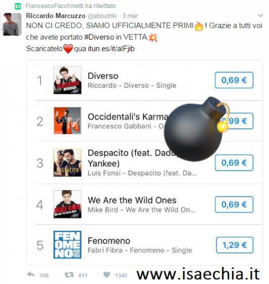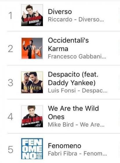 Questa pubblicità ha portato il singolo del Marcuzzo ad essere primo in classifica, scavalcando addirittura il brano vincitore di Sanremo 2017, “Occidentali’S Karma” di Francesco Gabbani!