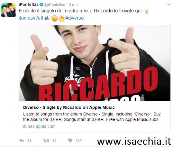 I numerosi fan del programma ci hanno segnalato anche che alcuni Vip appartenenti all’agenzia NewCo hanno recentemente sponsorizzato “Diverso“, il nuovo singolo di Riccardo: