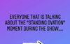 Adesso parlerò del momento ‘standing ovation’ successo durante la puntata. Il rispetto va guadagnato e non è dovuto. La standing ovation è una forma di applauso in cui i membri di un pubblico seduto dopo aver visto delle esibizioni straordinarie sentono il bisogno di alzarsi e applaudire. Le standing ovation sono considerate un onore speciale. Fondamentalmente è qualcosa che ti stai guadagnando. Se io faccio una standing ovation significa che ho molto rispetto per te o una vera ammirazione che viene dal profondo del cuore per te e per le tue prestazioni sul palco. Io non fingo, non recito, mai!
