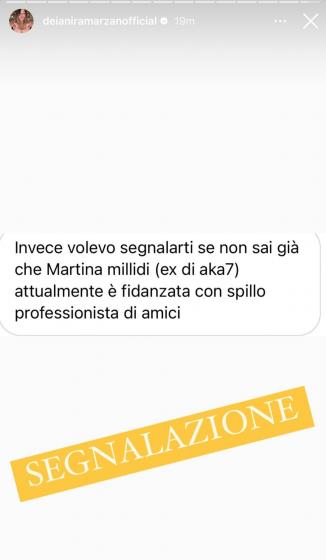 Volevo segnalarti se non sai già, che Martina Miliddi (ex di Aka7even) attualmente è fidanzata con Spillo, professionista di Amici.