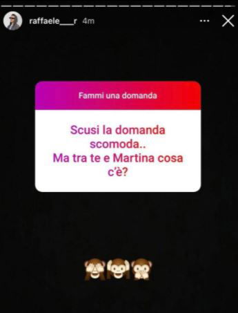 In diverse occasioni Martina e Raffaele avevano sviato ogni domanda sul loro rapporto. Lei, ospite di Verissimo, aveva detto di volersi concentrare solo sul ballo. Lui, a Tv, Sorrisi e Canzoni, aveva invece ammesso che non voleva entrare a far parte di questa “telenovela”. Stando all’ultima risposta che Raffaele ha dato sui social, però, qualcosa potrebbe essere cambiato. Alla domanda “tra te e Martina cosa c’è?“, il calabrese ha risposto con le tre faccine delle scimmiette che rappresentano il “non vedo, non sento, non parlo“.