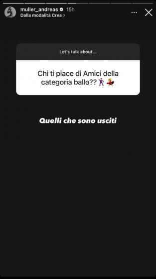 Muller ha ammesso di seguire costantemente il talent e lo ha dimostrato anche durante questa edizione. Stavolta però, non si è espresso attraverso una nota positiva, ma al contrario, con una vena che è sembrata ai suoi utenti abbastanza polemica. Il serale è attualmente in svolgimento e già ci sono stati diversi eliminati della categoria ballo. Megan, Gianmarco, Samu e Alessio sono i danzatori di Amici che hanno perso al ballottaggio rispettivamente nella prima, seconda terza e quarta puntata. A tal proposito, il professionista si è dimostrato chiaramente contrariato. Un utente gli ha chiesto chi fossero i suoi ballerini preferiti di questa edizione. Andreas ha tuonato in tutta sincerità: