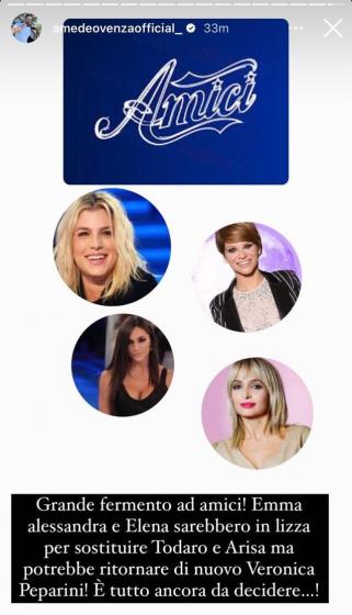 Un rumor che ha preso piede nelle ultime ore e spoilerato da Amedeo Venza, vedrebbe in lizza per sostituire i tre prof, tre amatissime ex allieve di Amici. Si tratterebbe di Elena D’Amario, Emma e Alessandra Amoroso. Potrebbe tornare nel talent anche Veronica Peparini!