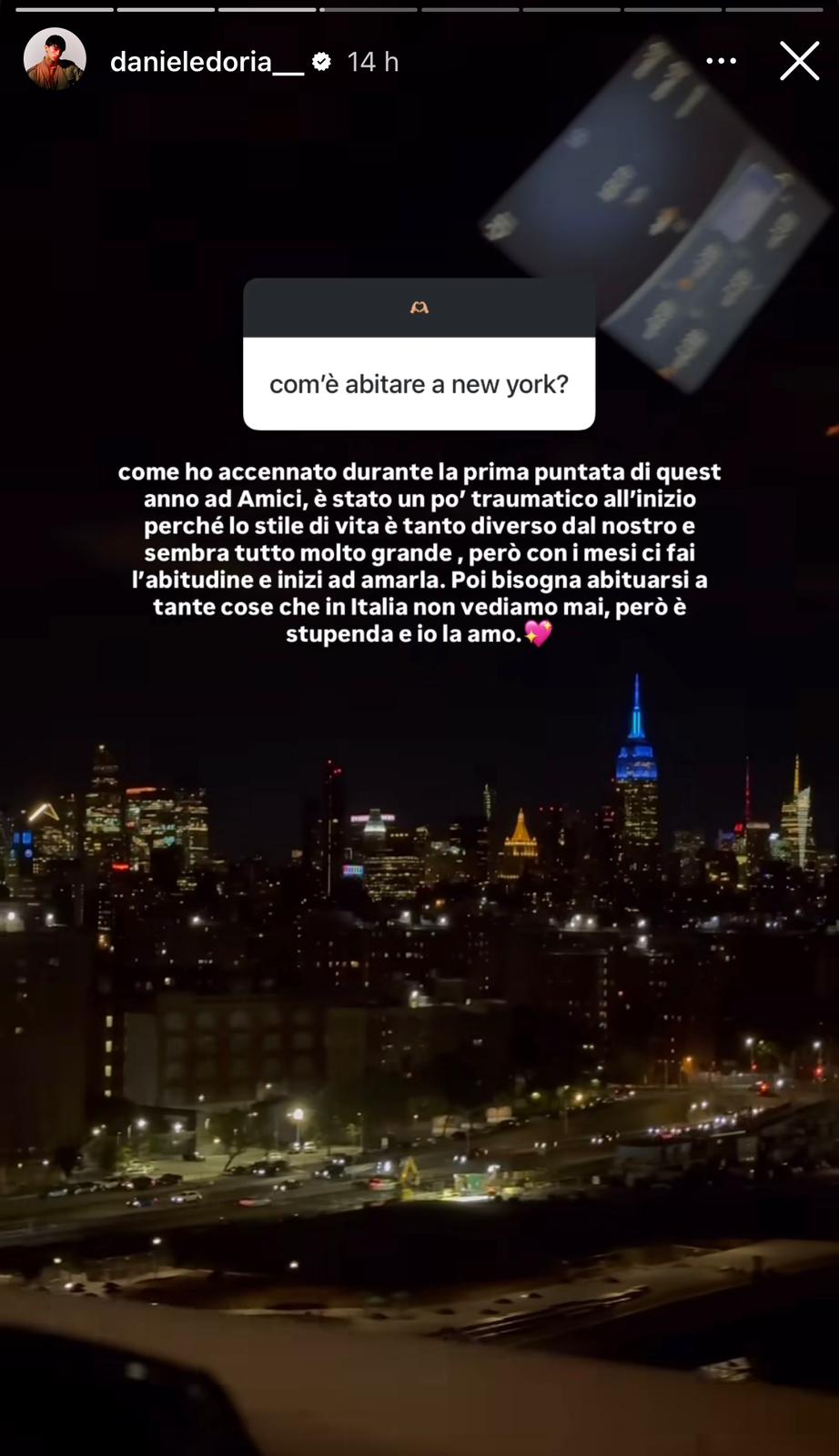Doria ha ammesso di voler tornare al più presto a New York per continuare i suoi studi e ha confessato che il primo momento nella Grande Mela è stato traumatico ma che, con il tempo, è riuscito ad adattarsi.
