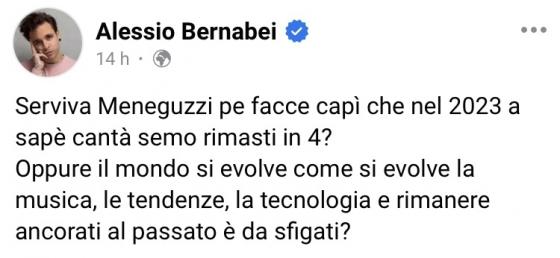 Serviva Meneguzzi pe facce capì che nel 2023 a sapè cantà semo rimasti in quattro? Oppure il mondo si evolve come si evolve la musica, le tendenze, la tecnologia e rimanere ancorati al passato è da sf***ti