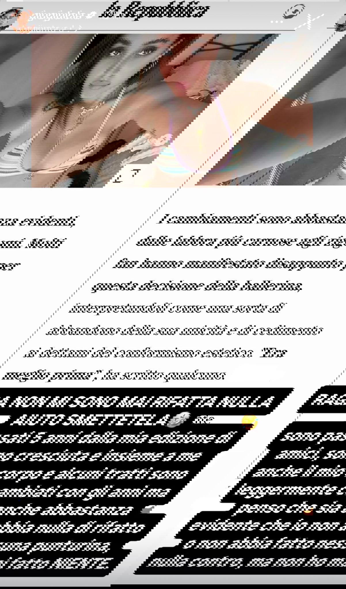 sono passati 5 anni dalla mia edizione di amici, sono cresciuta e insieme a me anche il mio corpo e alcuni tratti sono leggermente cambiati con gli anni ma penso che sia anche abbastanza evidente che io non abbia nulla di rifatto o non abbia fatto nessuna punturina, nulla contro, ma non ho mai fatto NIENTE.