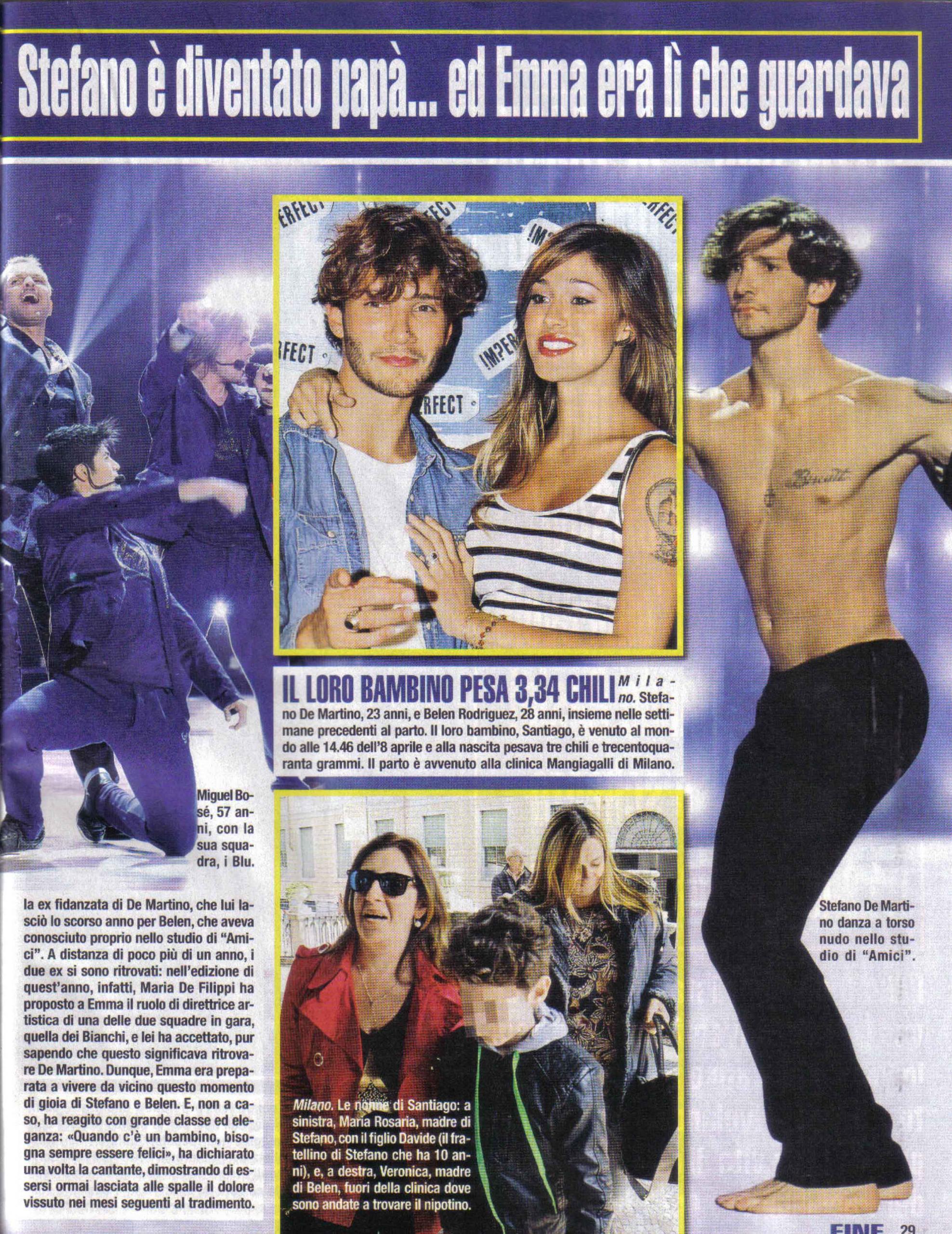 La notizia della nascita del piccolo Santiago è stata accolta con gioia dai colleghi di Stefano De Martino, che dall’anno scorso è tra i ballerini professionisti di Amici: concorrenti, professori e tecnici della trasmissione si sono congratulati con lui. Nel fiume di gioia che ha invaso Amici si è ritrovata però anche Emma Marrone, che si è ritrovata nel programma nel ruolo di direttrice artistica della squadra bianca. Ed ha accettato nonostante l’anno prima fosse proprio lì che Stefano l’aveva lasciata a causa dell’amore nato con Belén Rodriguez. Alla notizia del bambino, però, ha reagito con classe: “Quando c’è un bambino, bisogna sempre essere felici” ha dichiarato.