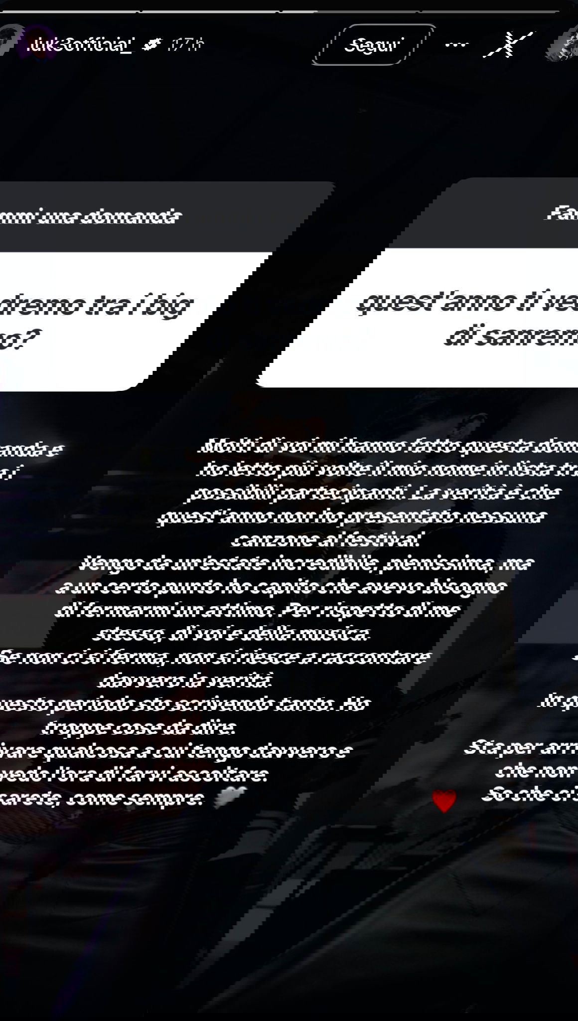 In realtà però le cose non stanno così, dal momento che nelle scorse ore Luk3 ha risposto ad alcune domande dai fan, smentendo la sua partecipazione al Festival: