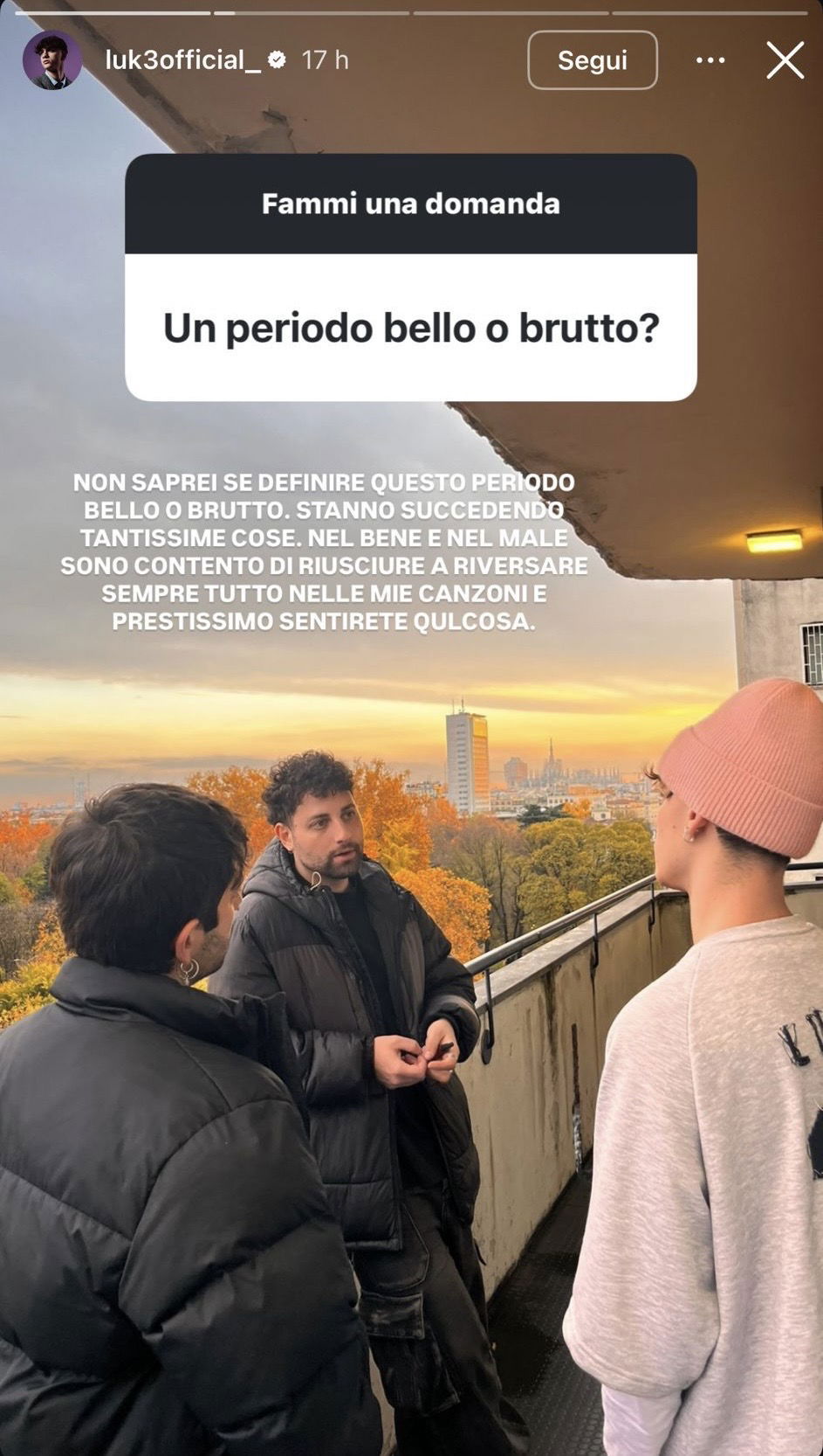 Infine, ha risposto a chi gli chiedeva se vedesse ancora alcuni dei suoi ex compagni di avventura e l’ex allievo ha postato un video in compagnia di Nicolò Filippucci, Antonia Nocca e Senza Cri, ma più volte Luk3 ha ribadito di avere ancora legami anche con Jacopo Sol e Trigno, ad esempio.