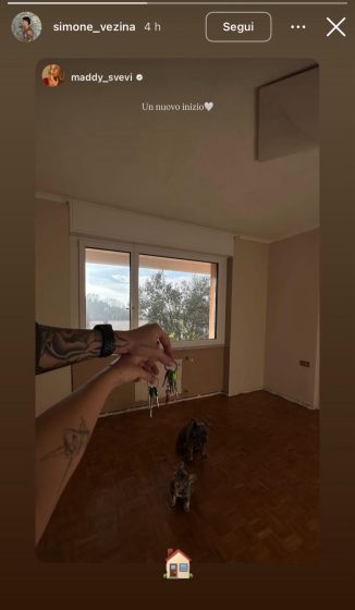 Maddalena, infatti, condiviso sul suo profilo Instagram una storia in cui si vede una casa vuota e le loro mani che tengono un mazzo di chiavi. Ad accompagnare lo scatto, già eloquente, la didascalia “un nuovo inizio”, lasciando così intendere che per la giovane coppia è già arrivato il momento di andare a convivere.