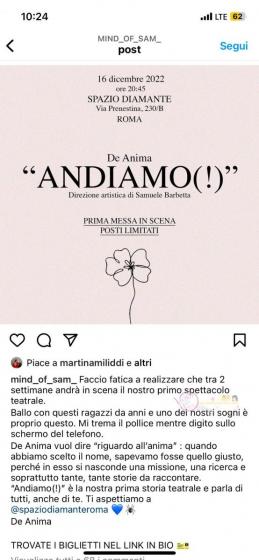 Si tratta di “De Anima, Andiamo!“, che è stato presentato al pubblico allo Spazio Diamante a Roma lo scorso 16 dicembre. Il Barbetta ha raccontato le sue emozioni prima dello spettacolo in un post condiviso sul suo account Instagram: