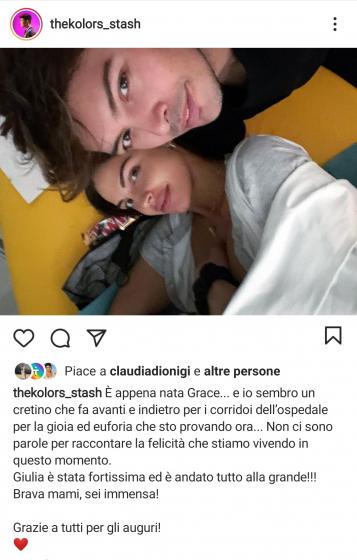 È nata la primogenita di Stash Fiordispino e Giulia Belmonte! Ad annunciare la lieta notizia è stato proprio il frontman dei The Kolors con una dolcissima storia condivisa sul suo profilo Instagram poco fa: “E’ nata Grace. Ed è la cosa più bella del mondo!“.