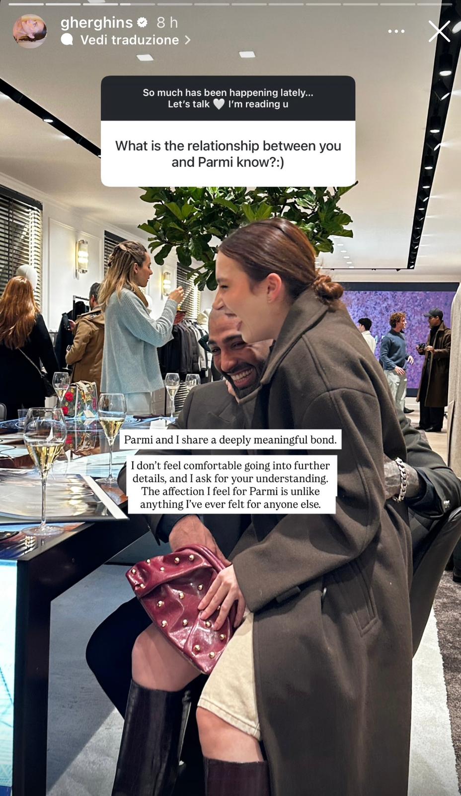 Anche Gergana rispondendo ad alcune domande dei suoi followers ha parlato del rapporto con Parmi e anche lei ha voluto mantenere una certa riservatezza a riguardo.
