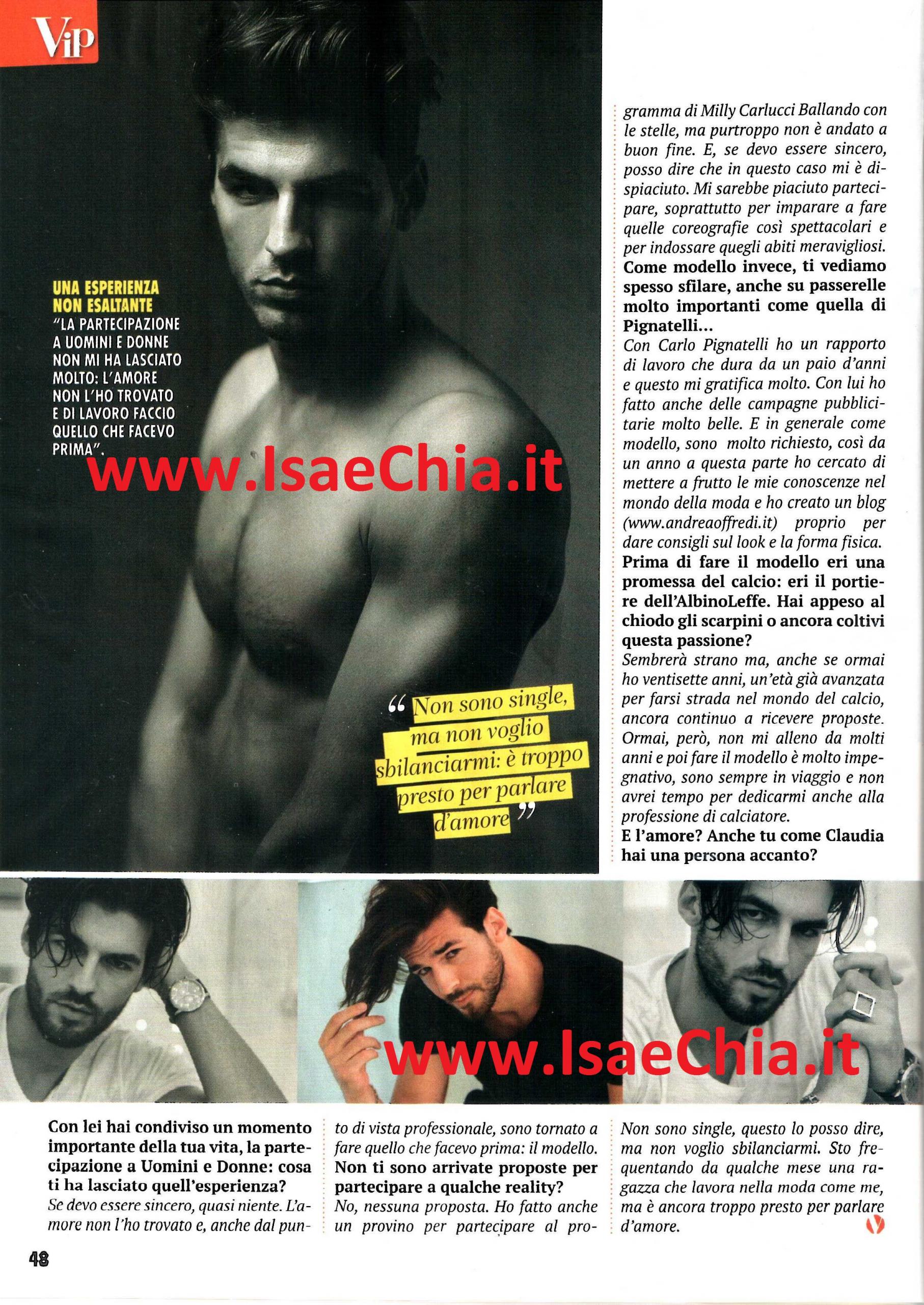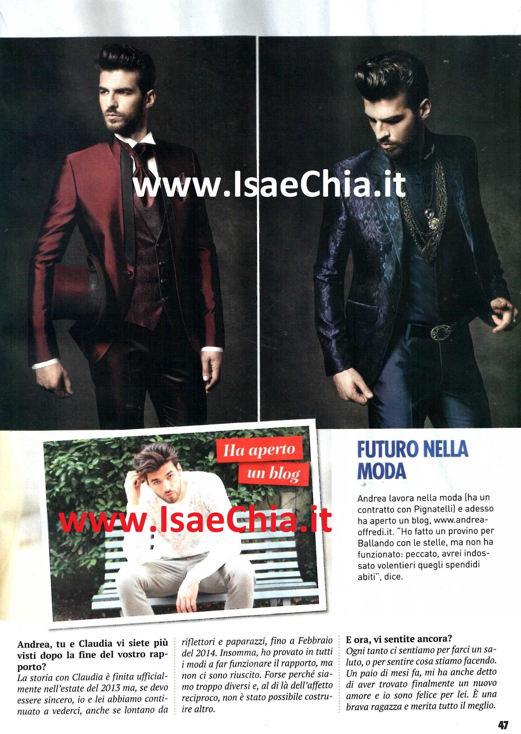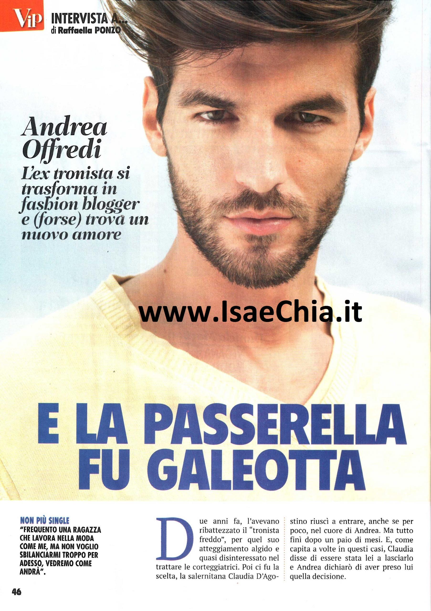 L’ex tronista Andrea Offredi era stato ribattezzato “il tronista freddo”, per il suo atteggiamento sempre un po’ distaccato nei confronti delle sue corteggiatrici. Alla fine, però, la bella Claudia D’Agostino era riuscita a dimostrargli il suo interesse e ad essere la sua scelta. Dopo vari alti e bassi, la loro storia è andata avanti per un po’, ma da qualche mese sembra definitivamente archiviata: “La nostra storia è finita ufficialmente nell’estate 2013, ma se devo essere sincero, io e lei abbiamo continuato a vederci anche lontano da riflettori e paparazzi, fino a febbraio 2014. Insomma, ho provato in tutti i modi a farla funzionare, ma non ci sono riuscito. Forse perché siamo troppo diversi e, al di là dell’affetto reciproco, non è stato possibile costruire altro. Ogni tanto ci sentiamo per un saluto; un paio di mesi fa mi ha detto di aver finalmente trovato l’amore e sono felice per lei. E’ una brava ragazza e merita il meglio“. Quando gli si chiede se l’esperienza a Uomini e Donne gli ha portato almeno qualche altro vantaggio, il bel bergamasco risponde: “Sinceramente quasi niente. L’amore non l’ho trovato e sono tornato a fare il modello. In tv non ho ricevuto nessuna proposta. Anzi, avevo fatto il provino per Ballando con le stelle, ma purtroppo non è andato a buon fine. E posso dire che in questo caso mi è dispiaciuto. Mi sarebbe piaciuto partecipare, soprattutto per imparare quelle coreografie così spettacolari e indossare quegli abiti meravigliosi! Come modello, invece, ho fatto delle campagne pubblicitarie molto belle con lo stilista Carlo Pignatelli, con il quale lavoro da due anni. In generale come modello sono molto richiesto e da un anno ho deciso di mettere a frutto le mie conoscenze nel mondo della moda creando un blog, www.andreaoffredi.it, per dare consigli sul look e sulla forma fisica. Inoltre, anche se ho 27 anni, un’età avanzata per iniziare una carriera nel calcio, continuo a ricevere proposte. Però non mi alleno da anni e fare il modello è impegnativo, sono sempre in viaggio e non avrei il tempo per fare il calciatore“. Infine, quando gli si chiede se, come Claudia, ora anche lui ha trovato l’amore, svela: “Non sono single, questo lo posso dire, ma non voglio sbilanciarmi. Sto frequentando da qualche mese una ragazza che lavora nel mondo della moda come me, ma è ancora presto per parlare d’amore!“.