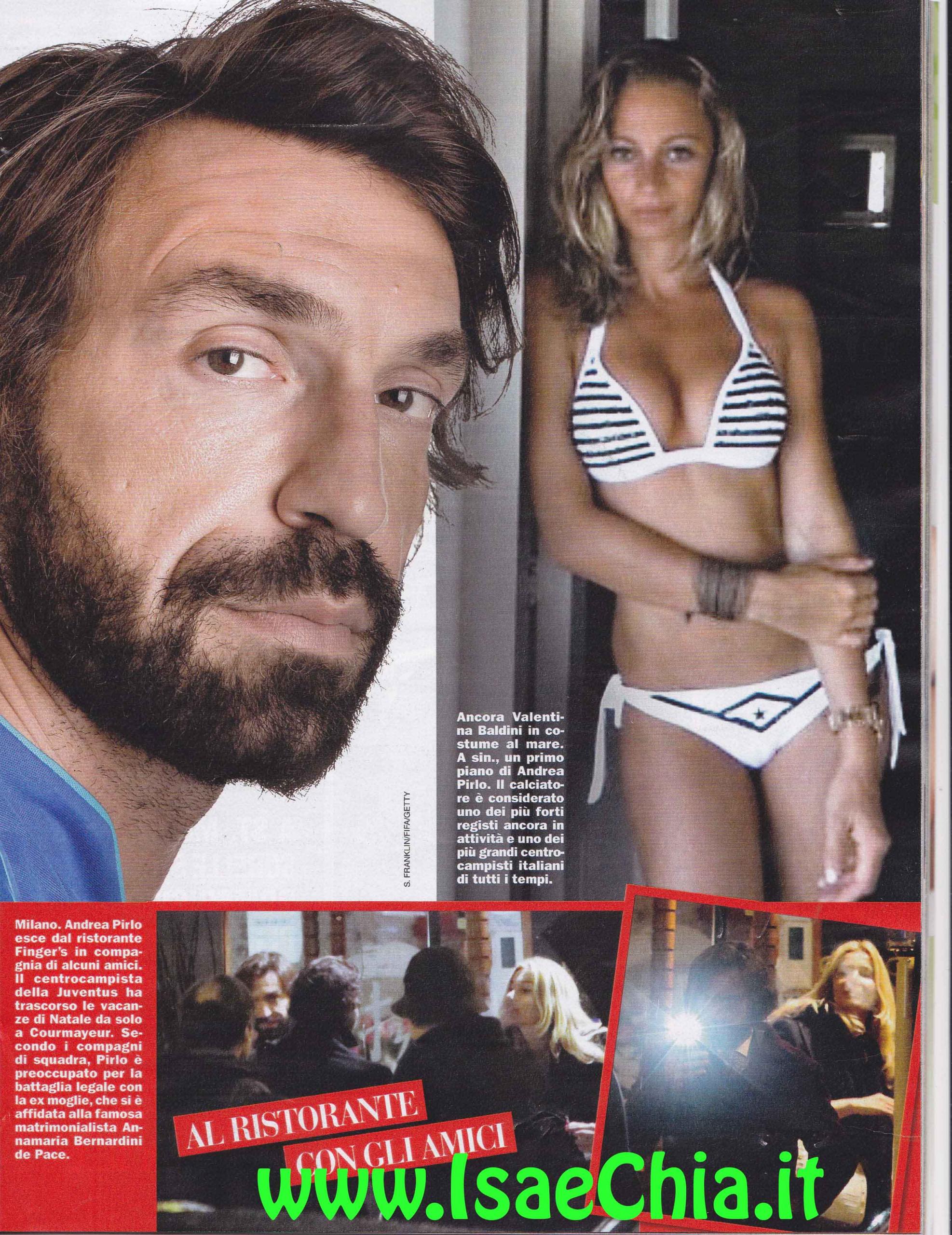 Si era parlato di incomprensioni, ma in realtà dietro la rottura tra il calciatore Andrea Pirlo e la moglie Deborah Roversi, dopo 12 anni di matrimonio e due figli, c’è un’altra donna. Lei è Valentina Baldini, che a Torino è conosciuta da tutti perché è stata con Riccardo Grande Stevens, figlio dell’avvocato Franzo, il legale della famiglia Agnelli: lui è stato beccato a Torino, dopo aver accompagnato i figli a scuola, mentre incontra lei, che, tornata da una passeggiata, è entrata nel suo stesso portone, cercandosi di coprire con cappelli, occhiali e cappotti. A presentarci Valentina ci pensa il suo ex, l’avvocato Grande Stevens: “Siamo stati fidanzati dieci anni, ma sul matrimonio avevamo opinioni divergenti. Non porto nessun rancore e ci sono altre cose che possono portare ad una rottura, magari le patologie, come quella dello shopping compulsivo” dice lui. Quindi, quando gli si chiede se non è finita per causa di Pirlo, risponde: “E’ finita, punto. Non do peso alle cose che sento raccontare. Come la dimenticherò? Ho avuto storie più importanti di quella con Valentina. E’ la stessa vita, che corre veloce, e tutto passa…In più vivo e lavoro all’estero, quindi… Spero solo che con queste mie parole, la vicenda possa chiudersi”.