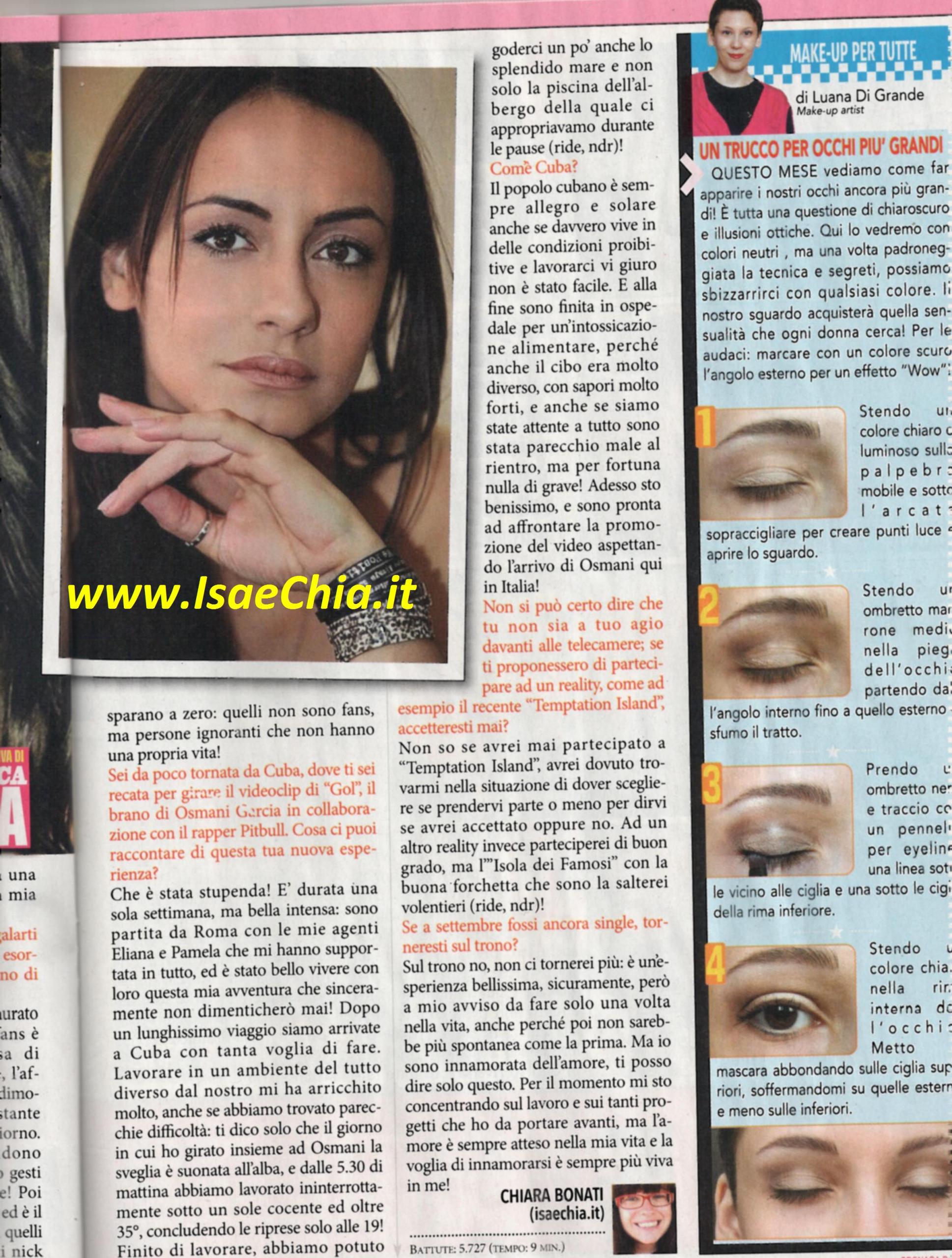 Negli scorsi giorni, a Uomini e donne e poi abbiamo rivisto il trono di Anna Munafò. Chiara Bonati, ossia la nostra Chia, ha intervistato l’ex tronista per la rivista Cronaca Rosa: “La mia avventura a Uomini e donne è stata bellissima, anche se non si è conclusa col finale sperato. Ripercorrerlo è stato strano, ho provato un misto di emozioni brutte e belle rivivendo quei sei mesi, ma il tutto si è concluso con un sorriso. Il rapporto che si è instaurato coi miei fans è qualcosa di inspiegabile, mi dimostrano affetto sin dal primo giorno. Certo, poi ci sono anche le eccezioni e le persone che si nascondono dietro un nick finto e sparano a zero: quelli non sono fans, ma persone ignoranti che non hanno una propria vita!”. Quanto alla sua partecipazione al video di Osmani, in collaborazione con Pitbull, per il quale è volata a Cuba, Anna commenta: “E’ stata un’esperienza stupenda, anche se è durata solo una settimana. Sono partita da Roma con le mie agenti, Eliana Michelazzo e Pamela, e dopo un lunghissimo viaggio siamo arrivate, con tanta voglia di fare. Lavorare in un ambiente diverso ci ha arricchito, ma abbiamo trovato varie difficoltà: il giorno in cui abbiamo girato il video ci siamo alzate alle 5.30, abbiamo lavorato ininterrottamente sotto un sole cocente, a 35°, concludendo alle 19. Inoltre, sono finita all’ospedale per un’intossicazione alimentare, perché il cibo era molto diverso, con sapori molto forti, anche se sono stata molto attenta a tutto!”. Ma, facendole notare che non si può certo dire che non sia a suo agio davanti alle telecamere e quando le si chiede cosa ne penserebbe di partecipare ad un reality, risponde: “Non so se avrei partecipato a Temptation Island, avrei dovuto trovarmi nella situazione di dover scegliere. Ad un altro reality, invece, parteciperei di buon grado, ma l’Isola dei famosi, con la buona forchetta che sono, lo salterei volentieri! Tornare sul trono? E’ un’esperienza da fare una sola volta nella vita, anche perché non sarebbe spontanea come la prima. Ma io sono innamorata dell’amore. Per il momento mi sto concentrando sul lavoro, ma l’amore è sempre atteso nella mia vita e la voglia d’innamorarmi è sempre viva in me!”