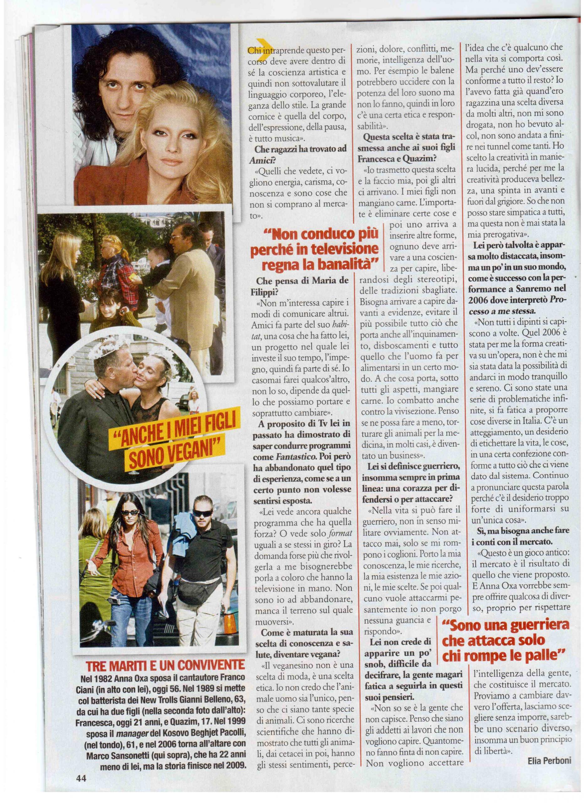 capire i modi di comunicare altrui, Amici è il suo habitat, una cosa che ha fatto lei e in cui investe da tempo. Io casomai farei qualcos’altro, non so, in base a quello che potrei portare. Vede programmi che hanno la stessa forza di Fantastico o solo format tutti simili a se stessi?”. Poi, dopo aver parlato della sua scelta di essere vegana, conclude: “Appaio snob, ma forse la gente non mi capisce, non vuole accettare che qualcuno si comporti come me. Perché devo essere conforme a tutto il resto?”