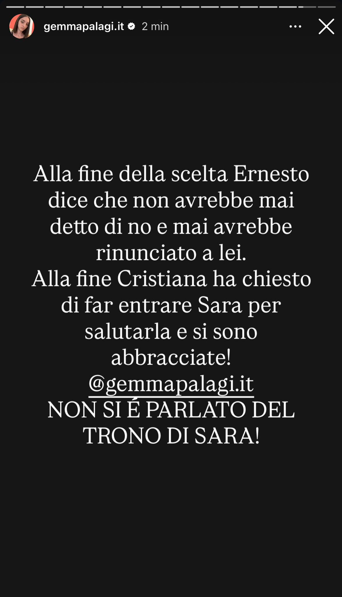 Grazie a Gemma Palagi, invece, ecco qualche altro dettaglio sia sulla scelta di Cristiana, sia sul trono di Ciro Solimeno che è un dubbio dopo le clamorose rivelazioni del tronista sui tempi in cui corteggiava Martina De Ioannon (leggi QUI di che si tratta):