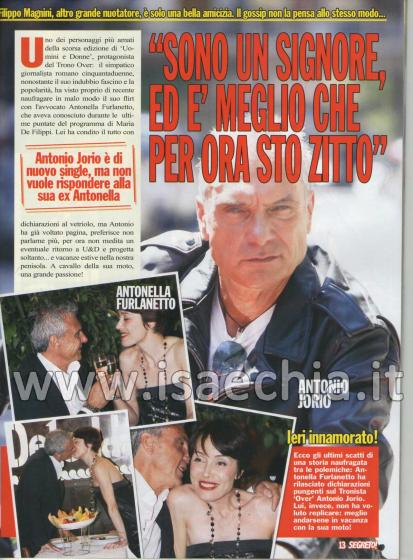 E’ durata meno di dieci giorni la storia fugace tra Antonio Jorio e la dama del trono over Antonella Furlanetto, eppure nonostante un lasso di tempo davvero risicato, gli strascichi di tale mini relazione continuano a procedere nel tempo. Lui preferisce non parlarne: peccato che quel “per ora” però non prometta nulla di buono…