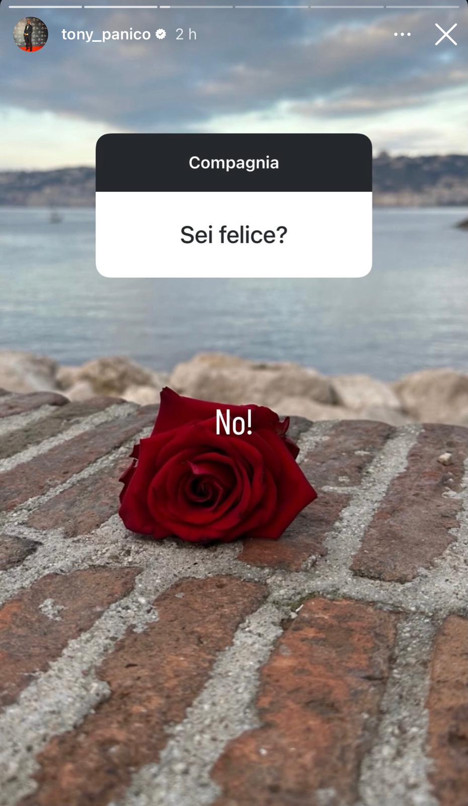 Per Antonio, invece, i sentimenti sembrerebbero essere più forti che mai e rispondendo ad un box domande ha rilasciato nuove dichairazioni sulla sua situazione. Per il campano non sono giorni facili e, nonostante la tristezza prenda il sopravvento, “sta cercando di trovare un punto di incontro con Valentina“.