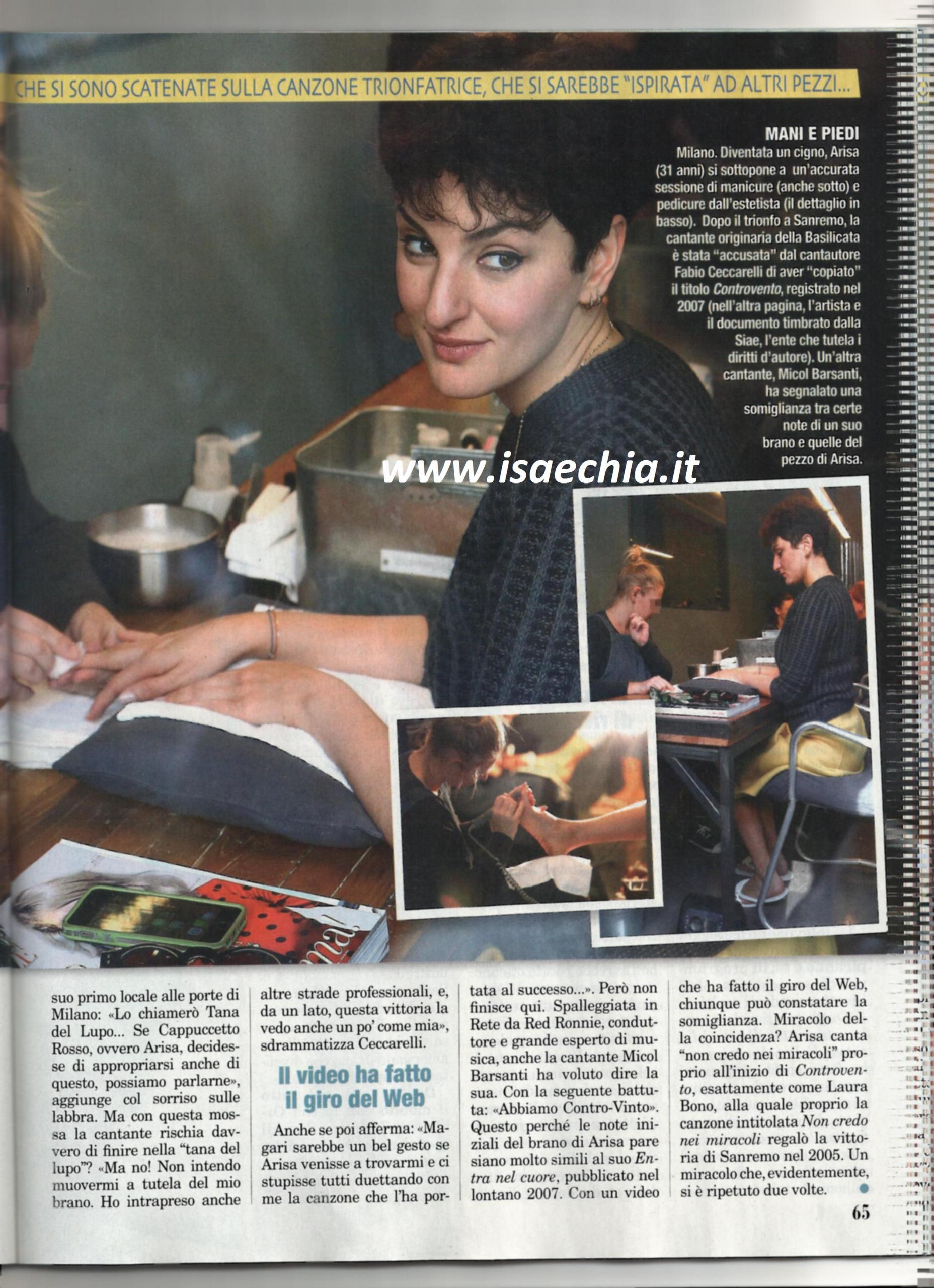 Ma Arisa non ha dato adito alle polemiche e si è rinchiusa in un silenzio stampa. Eccola mentre si rilassa dopo il trambusto del festival, da un’estetista di Milano, mentre si regala una seduta di manicure e pedicure.