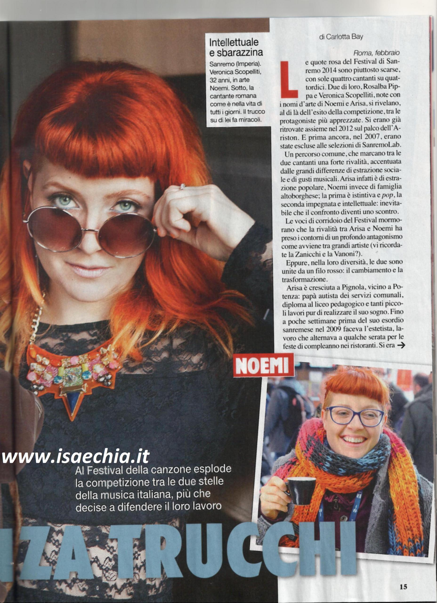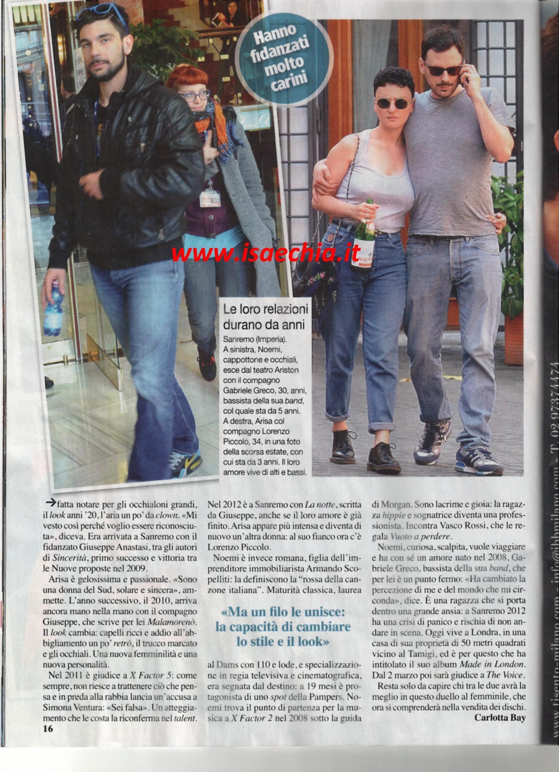 Arisa e Noemi si erano già trovate insieme sul palco dell’Ariston nel 2012 e nel 2007 erano state entrambe escluse alle selezioni di SanremoLab. Ma nonostante i percorsi simili, le due hanno grandi differenze di estrazione sociale e generi musicali. La prima, il cui vero nome è Rosalba Pippa, è di estrazione popolare e prima di Sanremo faceva l’estetista. La seconda, alias Veronica Scopelliti, è di classe medio-borghese. La prima istintiva e pop, la seconda impegnata e intellettuale. E, come Iva Zanicchi e Ornella Vanoni, pare che anche tra loro ci sia un forte antagonismo. Arisa si presentò la prima volta con un look un po’ da clown, dicendo: “Voglio essere riconosciuta”, look sostituito nell’anno di Malamorenò, capelli ricci e più femminile. Nel 2011 è giudice a X Factor, ma le accuse rivolte a Simona Ventura le costano la permanenza nel talent. Nel 2012 torna a Sanremo più matura con La notte e al suo fianco c’è un nuovo amore, Lorenzo Piccolo.