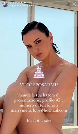 Arisa pubblica una foto senza veli e fa un appello choc sui social: “Valuto proposte di matrimonio”