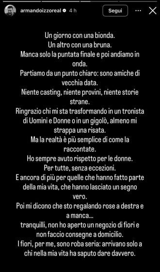 Stanco di tali voci, ci ha pensato lo stesso Armando a chiarire la situazione, mettendo a tacere i rumor sulla sua vita sentimentale: