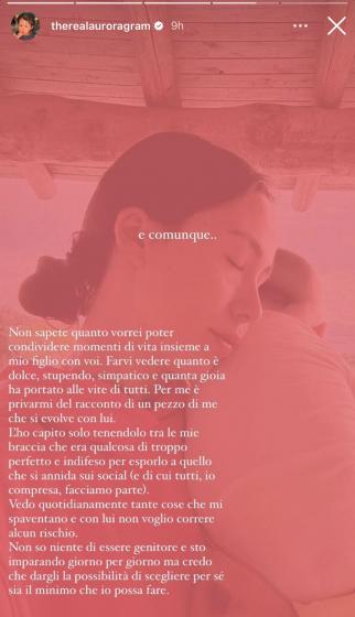 Aurora Ramazzotti spiega perché ha deciso di non mostrare il figlio sui social