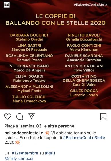 Prenderà il via il prossimo 12 settembre la nuova edizione di Ballando Con le Stelle, il talent show condotto da Milly Carlucci su Rai 1. A pochissimi istanti fa risale l’ufficializzazione – attraverso il profilo Instagram del programma – del cast di “improvvisati ballerini” che gareggeranno in coppia con i professionisti di questa 15esima edizione: