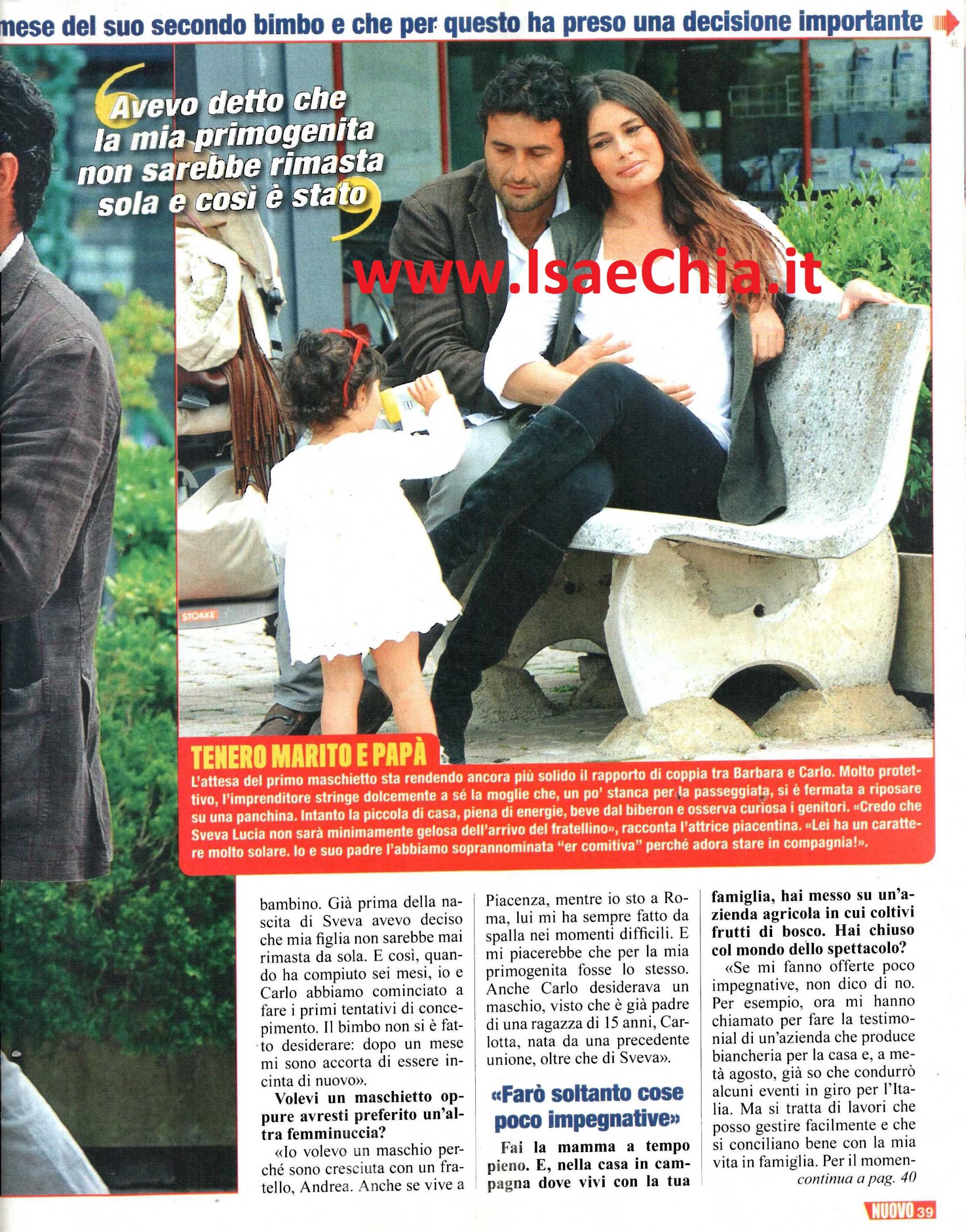 L’attrice e conduttrice Barbara Chiappini è stata fotografata bella come sempre ma radiosa come solo una donna incinta può essere. L’ex naufraga, infatti, è all’ottavo mese di gravidanza e presto arriverà il suo secondogenito. “Ho sempre sognato di metter su famiglia e ora che sto per dare un fratellino a Sveva, il cerchio si chiude e il sogno si realizza in tutto e per tutto. Sono al settimo cielo, ho fortemente desiderato questo bambino e avevo sempre desiderato che Sveva non restasse sola. Così, quando ha compiuto sei mesi, io e mio marito Carlo Maria Agostini abbiamo cominciato a fare i primi tentativi di concepimento e dopo un mese ho scoperto di essere incinta. Io volevo un maschietto, perché sono cresciuta con un fratello, Andrea, che mi ha sempre fatto da spalla nei momenti difficili. Anche Carlo desiderava un maschio, dato che è già padre di una ragazza di 15 anni, avuta prima di Sveva da una relazione precedente“. Oltre a fare la mamma, la showgirl ha anche messo su un’azienda agricola in cui coltiva frutti di bosco. Quando le si chiede se questo significa che ha chiuso con la tv, risponde: “Se mi fanno offerte poco impegnative, non dico di no. Per esempio, mi hanno chiamato per fare da testimonial per un’azienda che produce biancheria per la casa e a metà agosto condurrò degli eventi in giro per l’Italia. Ma si tratta di lavori che posso conciliare bene con la mia vita da mamma. Per il momento, i figli sono la mia priorità: io non rinuncio a questa fase meravigliosa della mia vita“. Quando le si chiede come procede la gravidanza, invece, Barbara racconta: “Ho avuto forti nausee nei primi tre mesi, cosa che non mi era successa prima, ma ho messo solo 9 chili, anziché 18 come con Sveva: correre dietro a mia figlia è la migliore ginnastica! Nei mesi scorsi mi sono regalata un po’ d’attività fisica leggera in palestra, qualche passeggiata, e poi curo l’alimentazione!“. Infine, la Chiappini racconta come si prepara all’arrivo del piccolo: “L’ipotesi più probabile è chiamarlo Giulio, come il nonno paterno, d’altronde anche la prima si chiama Sveva Lucia, perché Lucia era il nome di mia madre, che ho perso quando avevo 11 anni. Penso a lei tutti i giorni, è il mio angelo custode e so che mi protegge e guida nelle scelte. A Sveva abbiamo spiegato che nella pancia c’è un bambino in attesa di uscire, che lei potrà coccolare e con cui potrà giocare. Allora spesso mi abbraccia il pancione e ride. Non è gelosa e sono sicura che non avremo problemi, perché è una bimba gioiosa: l’abbiamo ribattezzata ‘er comitiva’, perché ama stare in compagnia!”.