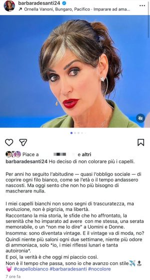 Barbara De Santi svela il motivo del suo cambio di look: “I miei capelli bianchi non sono segni di trascuratezza ma…”