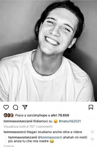 Inoltre, Tommaso in questi giorni è alle prese con la maturità e l’ultima foto da lui postata, è stata commentata da Tommaso Zorzi. Quest’ultimo ha terminato da poco l’esperienza come opinionista dell’Isola 15 e la conduzione de Il Punto Z, il suo programma, su Mediaset Play Infinity.