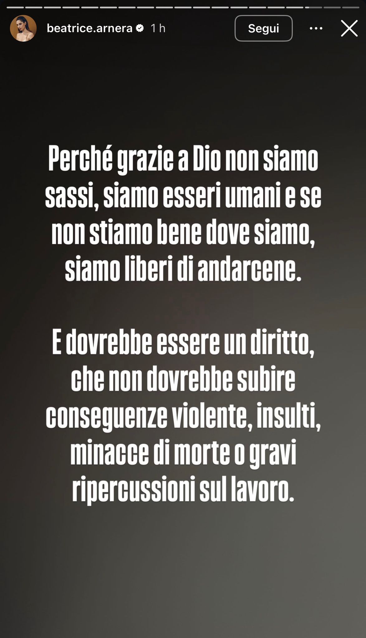 E’ uno sfogo durissimo quello pubblicato pochi minuti fa da Beatrice Arnera sul suo profilo ufficiale su Instagram.