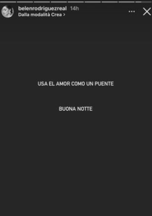 Ad avvalorare l’ipotesi di una crisi tra Belen e Antonino ci ha pensato una Instagram Stories postata dalla modella argentina sul suo profilo personale. “Usa el amor come un punte“, ha scritto lei, che tradotto vuol dire: