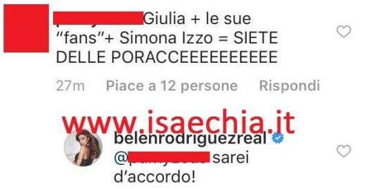 La showgirl argentina ha giudicato furba la De Lellis e ha approvato il commento di un’altra utente che ha definito “poracce” la giovanissima romana e l’ex gieffina Simona Izzo, rea di aver attaccato Jeremias.